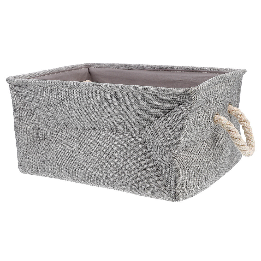 Lightweight Grey Linen Dog Toy Storage Box with Handle for Home