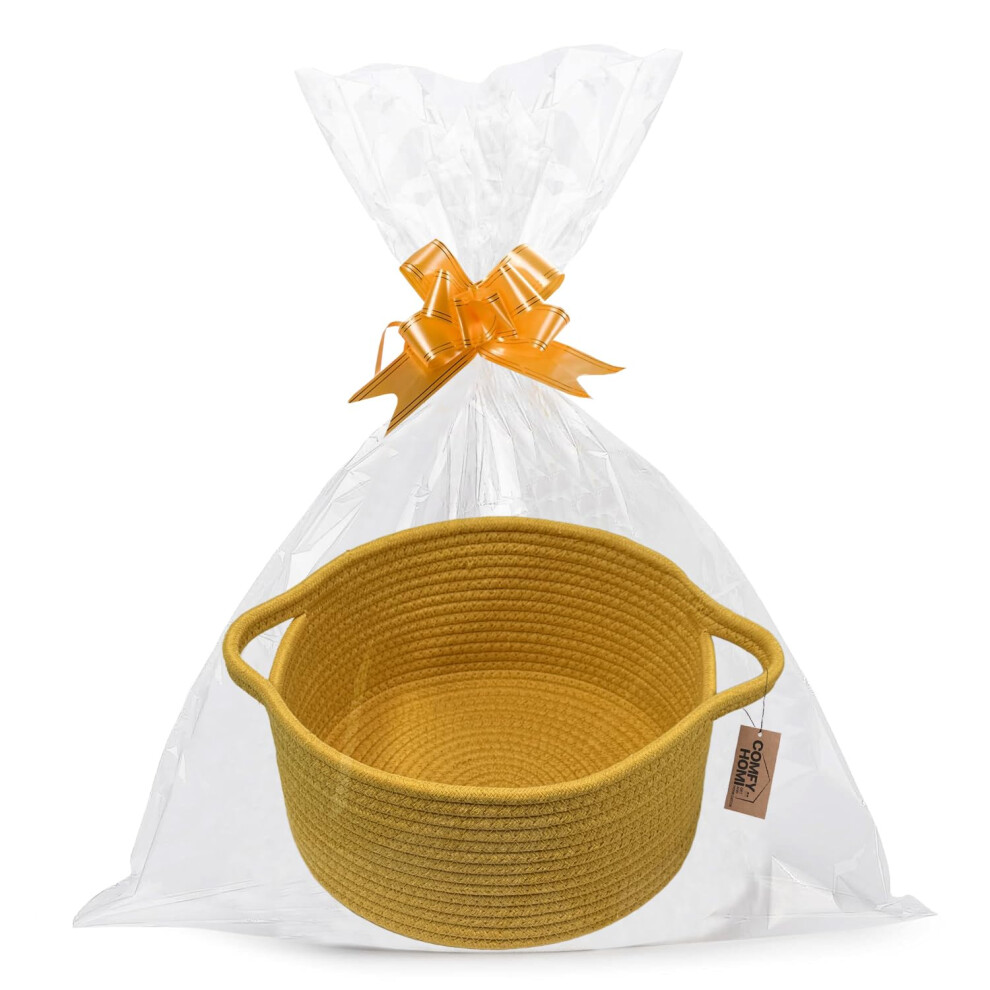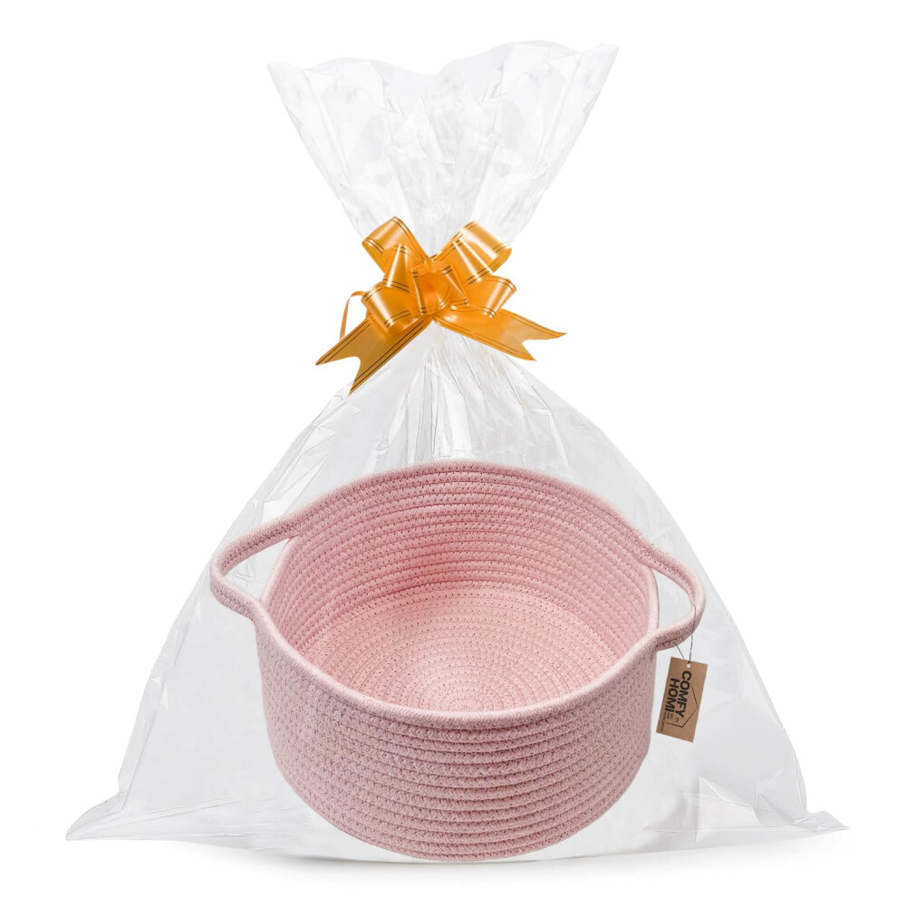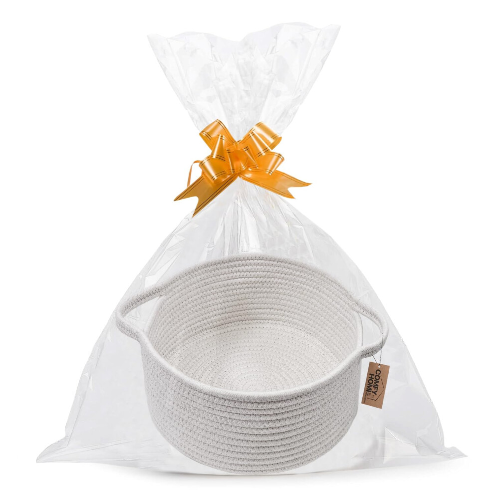 COMFY HOMI Small Woven Gift Baskets with Handles Gift Bags and Ribbons - Cotton Rope Storage Basket for Organizing Dog Toy Basket Box Gift Baskets