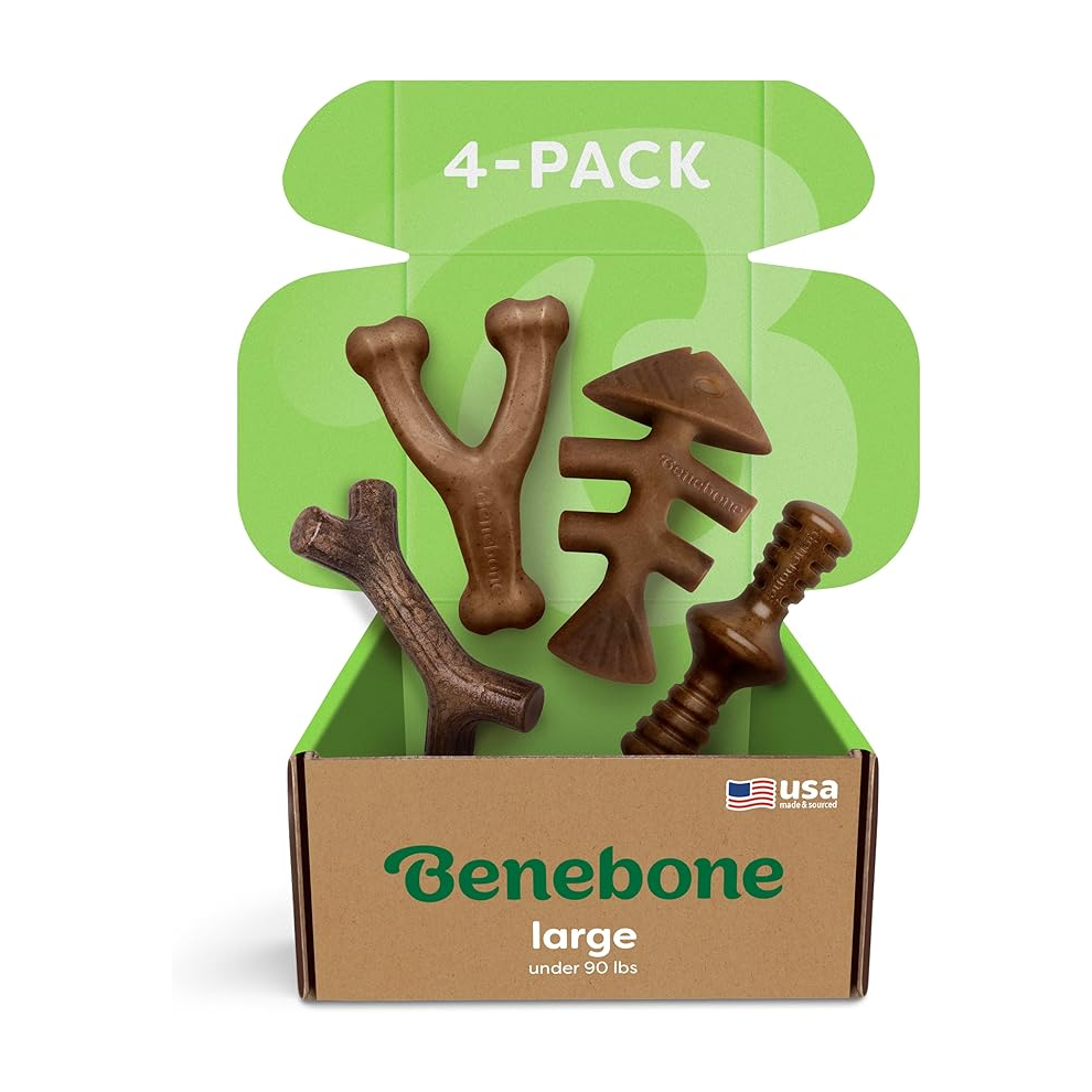 Benebone Indestructible Dog Chew Toy Gift Box for Aggressive Chewers with Wishbone, Fishbone, Stick & Zaggler, Long Lasting Boredom Breakers, 100% Real Flavours, For Large Dogs, Made in the USA.
