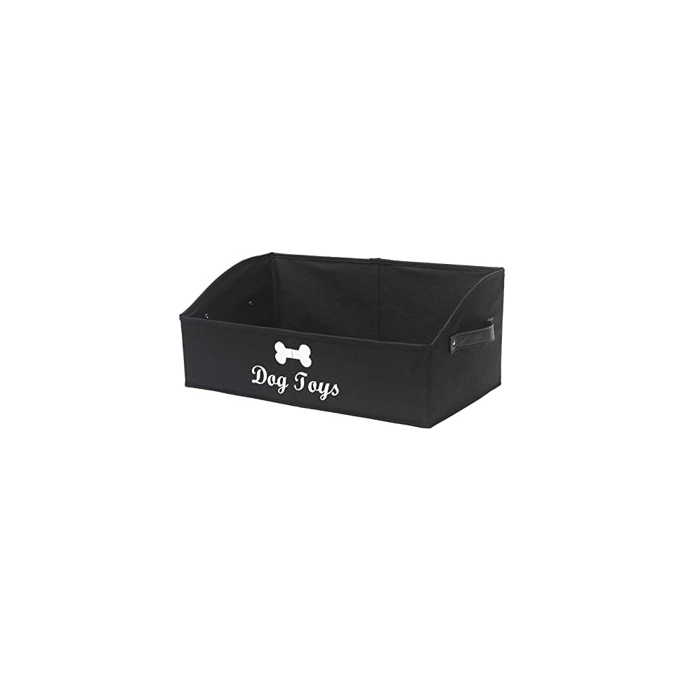 Large dog toy bin dog toy box storage box - Foldable Fabric Trapezoid Organizer Boxes with Handle, Collapsible Basket for Dog Toys(Black-DOG)