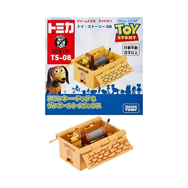 Tomica Dream Tomica Ride Toy Story TS-08 Slinky Dog & Cardboard toy box Japan