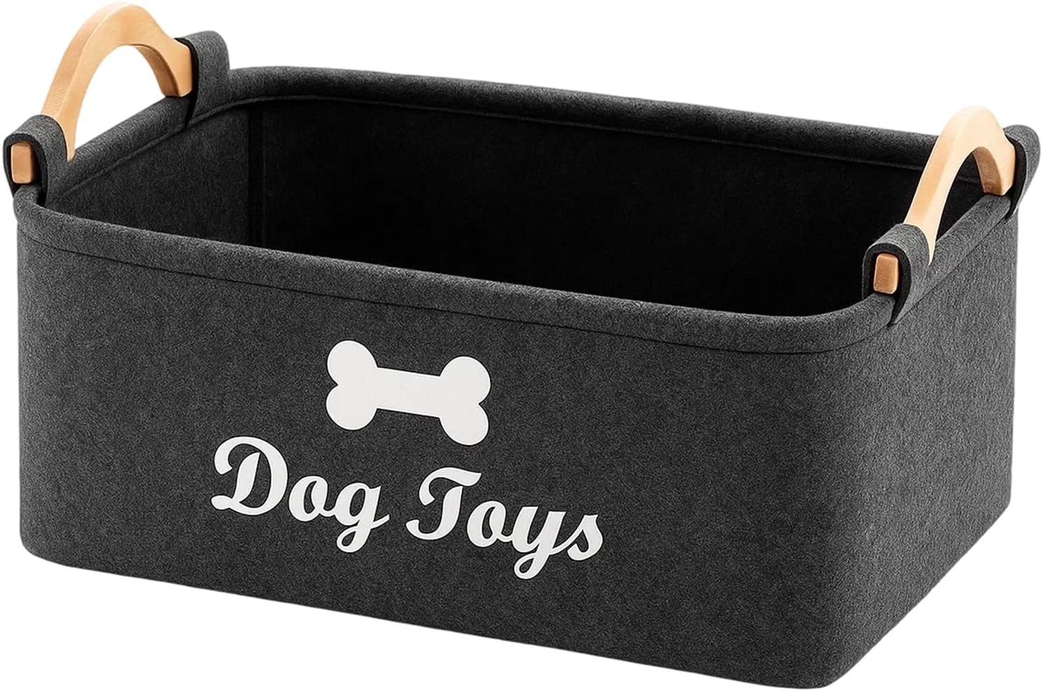 Morezi Felt pet toy box and dog toy box storage basket chest organizer - perfect for organizing pet toys, blankets, leashes and food - Dark Grey