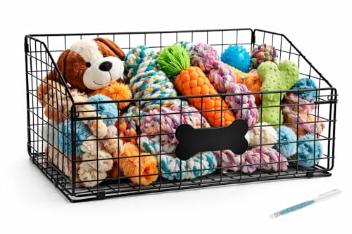 Dog Toy Basket-Metal Dog Toy Box-Wire Mesh Basket-Cute Pawprint Design-Pet Acce