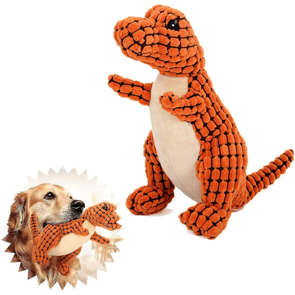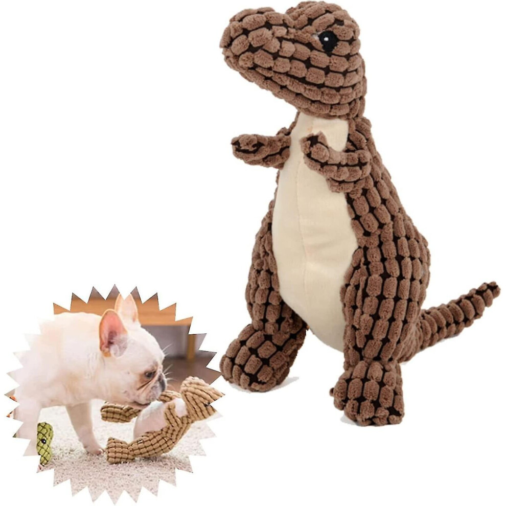(brown) Indestructible Robust Dino, Squeaky Dog Toys For Aggressive Chewers, Unbreakable Stuffed Plush Dog Toy