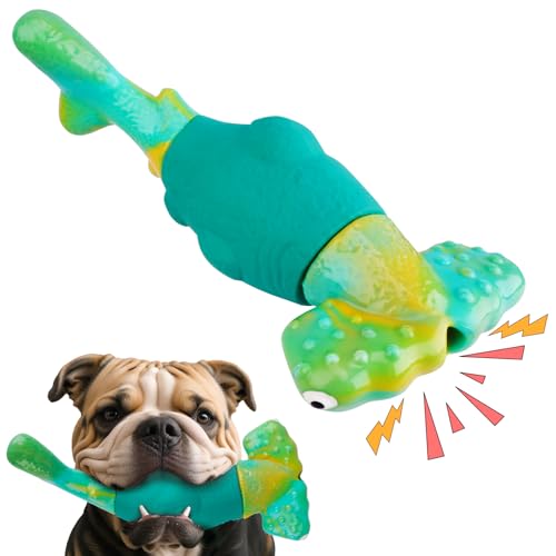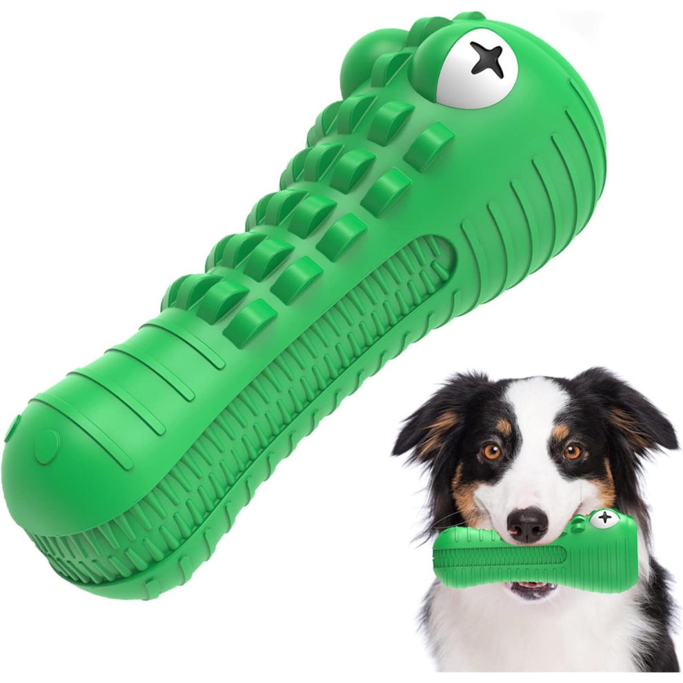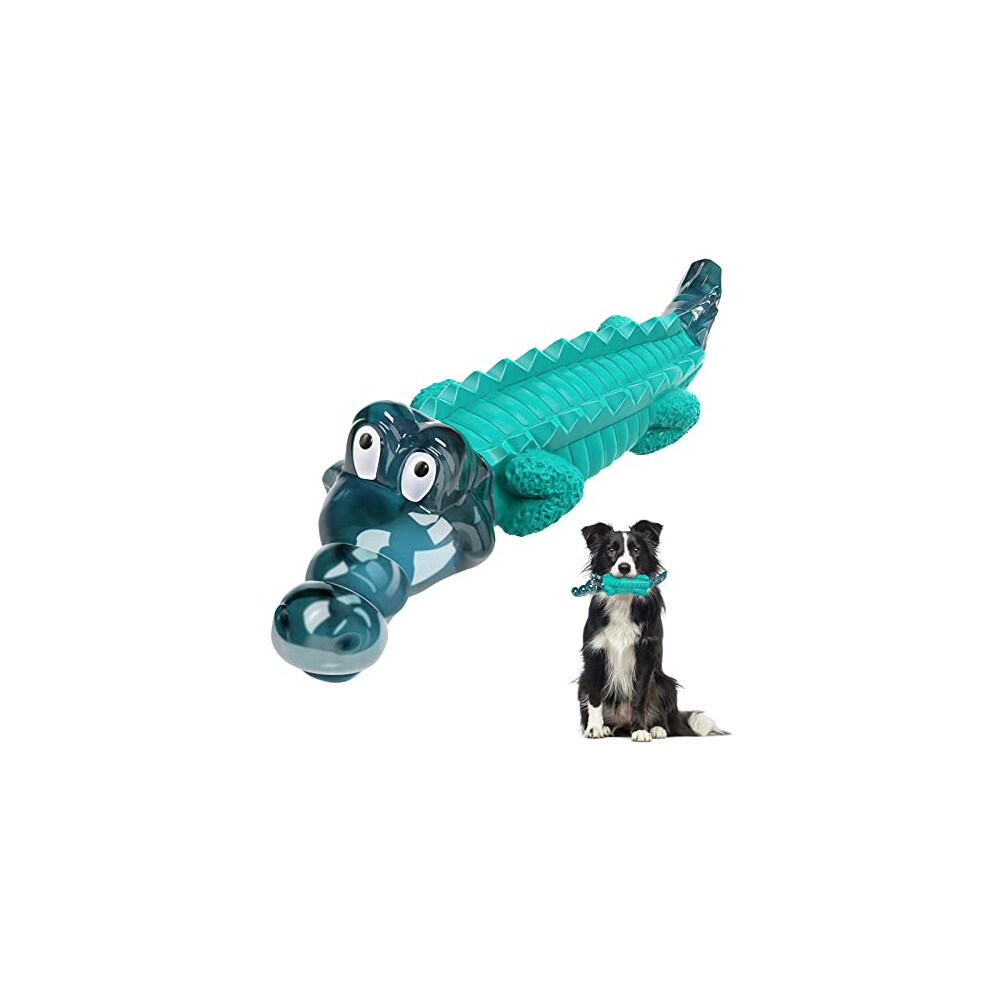 Dog Toys for Aggressive Chewers, Squeaky Dog Chew Toys Natural Rubber Milk Flavor for Medium Large Dogs (Green, Crocodile)