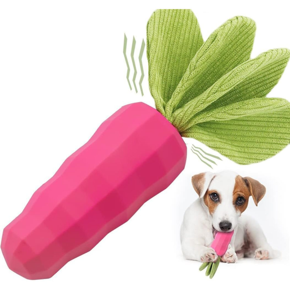 Dog Chew Toys, Carrot Dog Vocal Toys for Intense Chewers, Natural Rubber Milk Flavor Dog Teeth Cleaning Toys for Puppies, Medium Large Dogs (Pink)