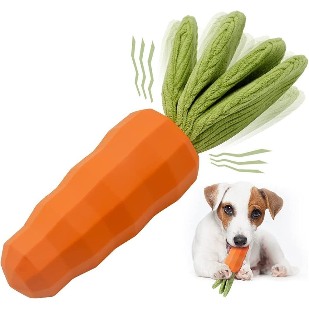 Dog Chew Toys, Carrot Dog Audible Toys for Fierce Chewers, Natural Rubber Milk Flavor Dog Teeth Cleaning Toys for Puppies, Small, Large Dogs (Orange)