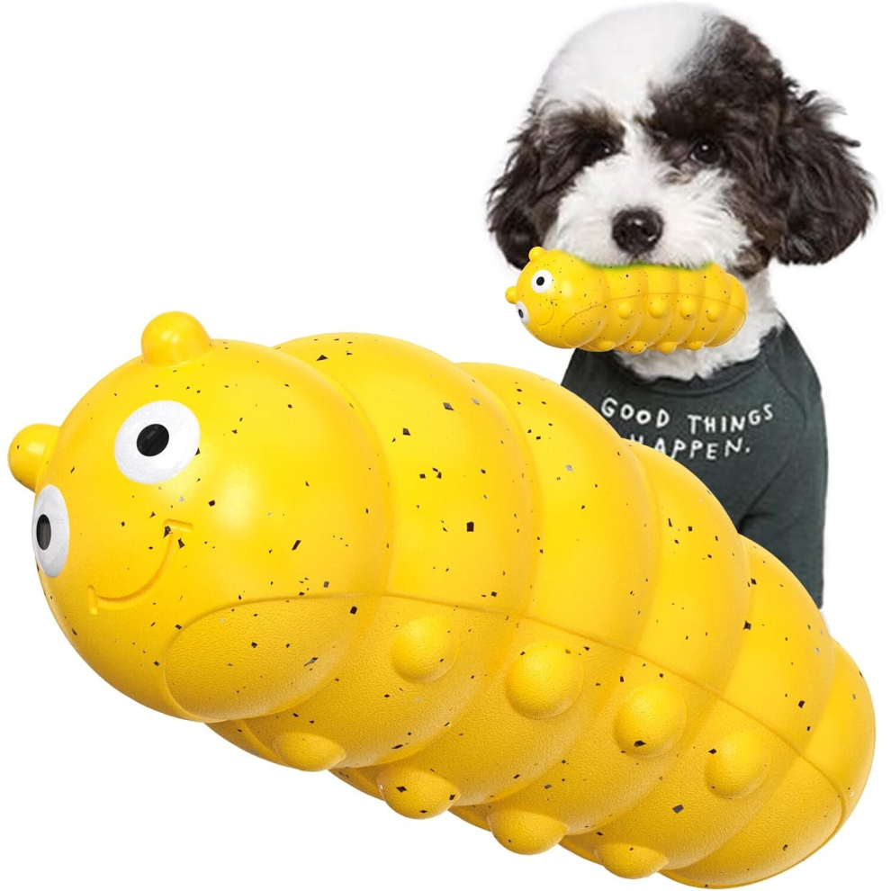 Dog Chew Toys for Fierce Chewers, Tough Dog Teeth Cleaning Toys, Squeaky Durable Interactive Dog Toys for Medium Dogs, Natural Rubber (Yellow)