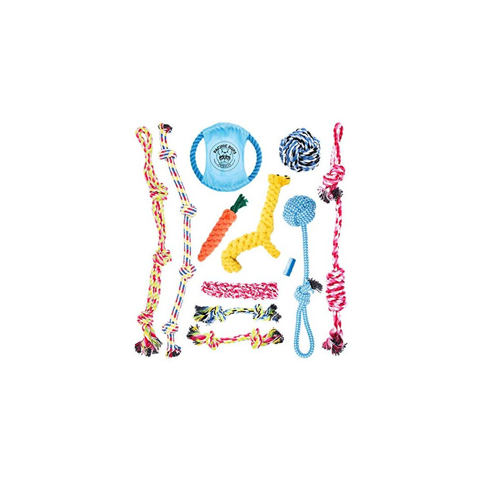 Pacific Pups Products supporting pacificpuprescue.com dog rope toys for aggressive chewers-set of 11 nearly indestructible dog toys-bonus giraffe rope