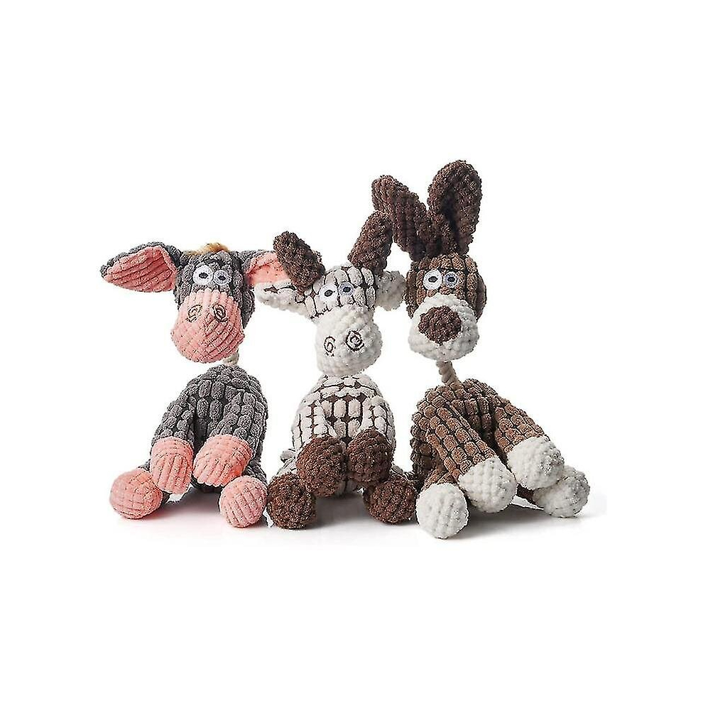 3pcs Indestructible Robust Donkey, Squeaky Dog Toys For Aggressive Chewers, Stuffed Dog Toy Plush Dog Toy