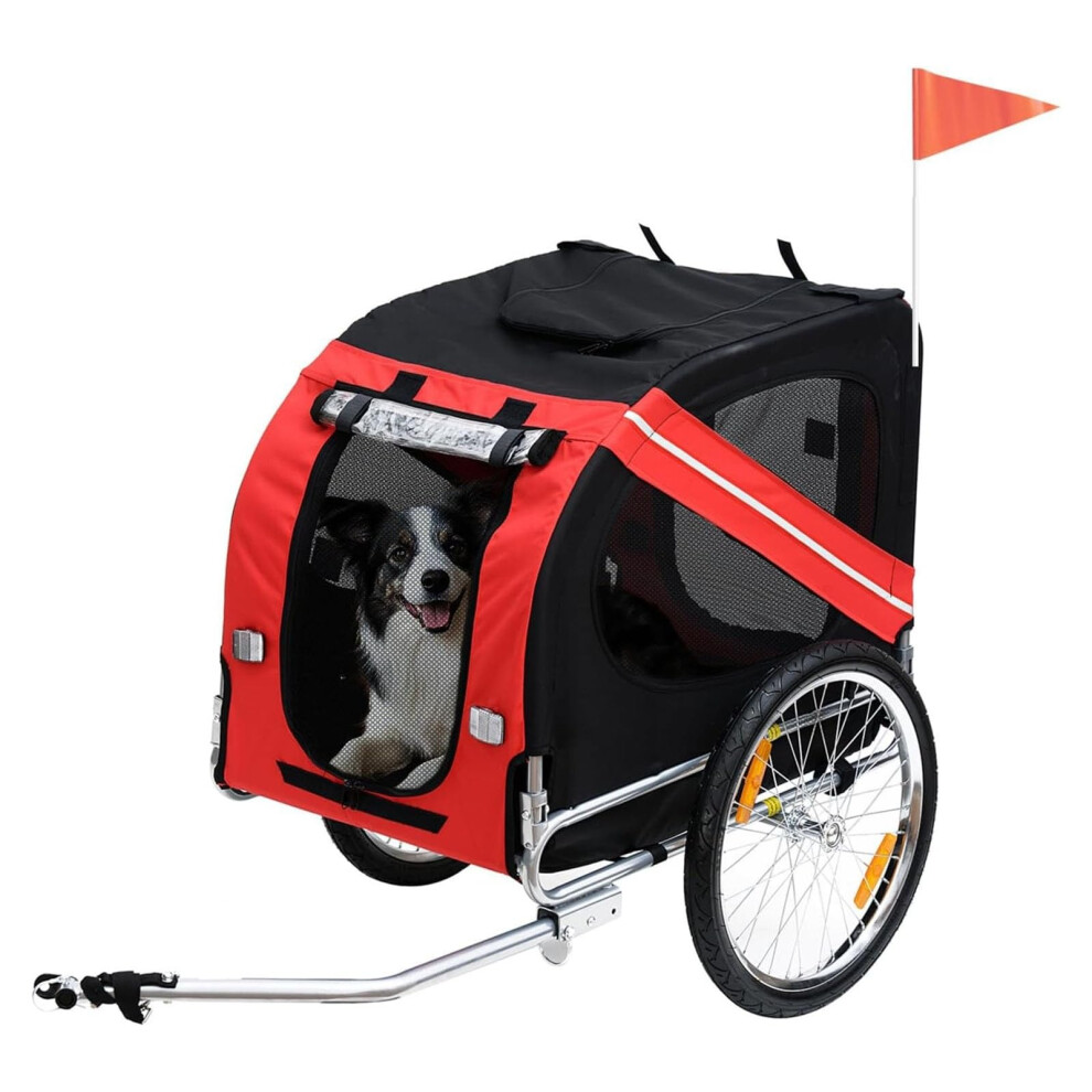 Dog Bike Trailer 2-in-1 Pet Stroller for Large Dogs Cart Foldable Bicycle Carrier Aluminium Frame with Safety Leash Hitch Coupler Reflector Flag