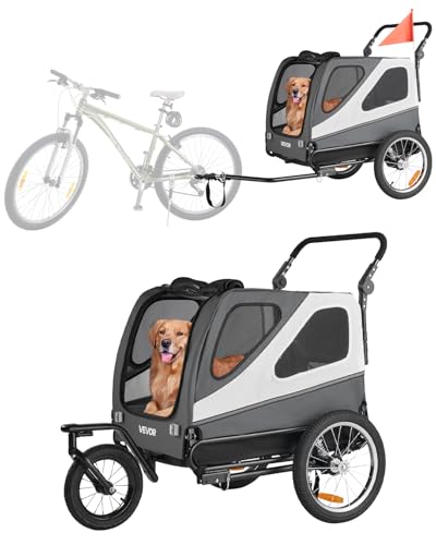 VEVOR Dog Bike Trailer, Supports up to 100 lbs, 2-in-1 Pet Stroller Cart Bicycle Carrier for Small & Large Dogs, Easy Folding Frame with Quick Release Wheel, Universal Bicycle Coupler, Internal Leash