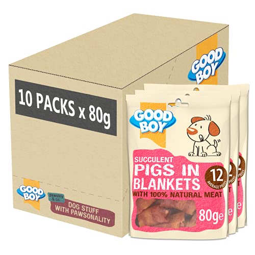 Good Boy - Succulent Pigs in Blankets - Dog Treats - Made With 100% Natural Meat - 80 Grams - Loved By Dogs All Year Round - Case of 10