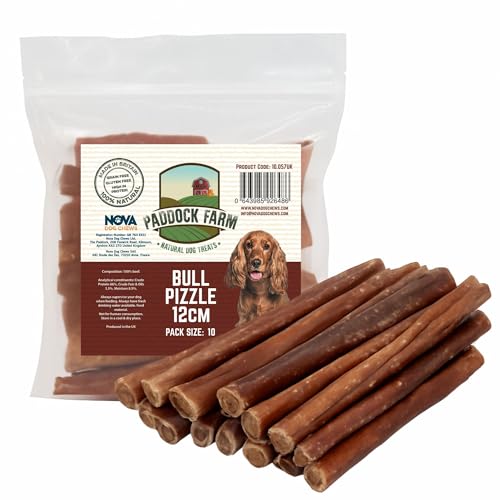 Nova Dog Chews 100% Natural Bull Pizzle Dog Chews - 12cm (10 Pack) | Bully Sticks for Dogs and Puppies - British Made Long lasting Beef Dental Chews - Grain-Free, Gluten-Free, Rawhide Free Dog Treats