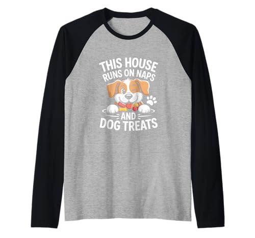 This House Runs On Naps and Dog Treats Funny Dog Raglan Baseball Tee