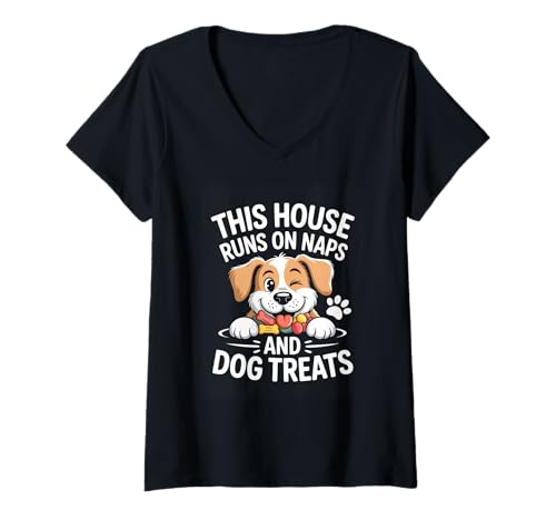 Women's This House Runs On Naps and Dog Treats Funny Dog V-Neck T-Shirt