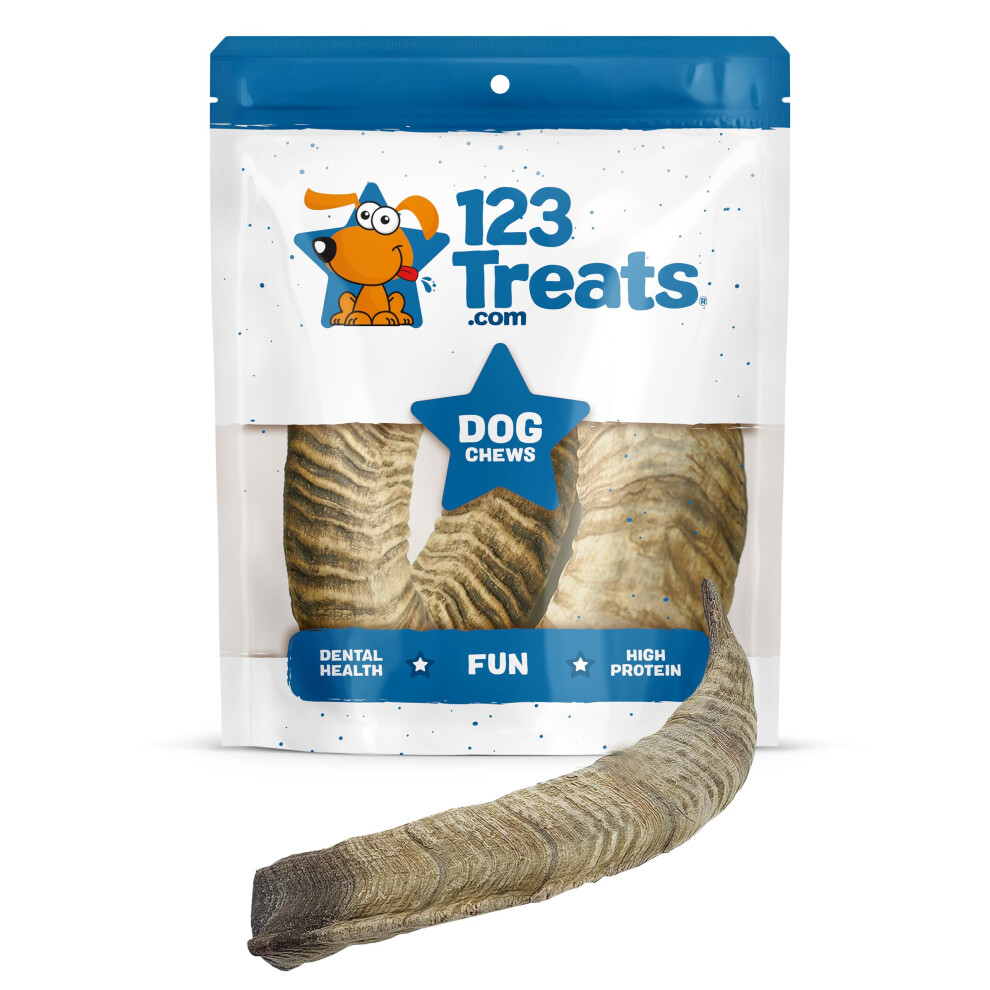 123 Treats Goat Horns for Dogs - (Large 3 Count) Long Lasting Dog Treats for Aggressive Chewers 100% Natural Rich in Protein & Low in Fat Support