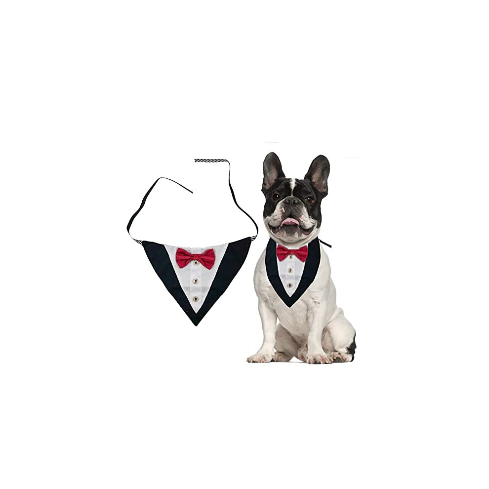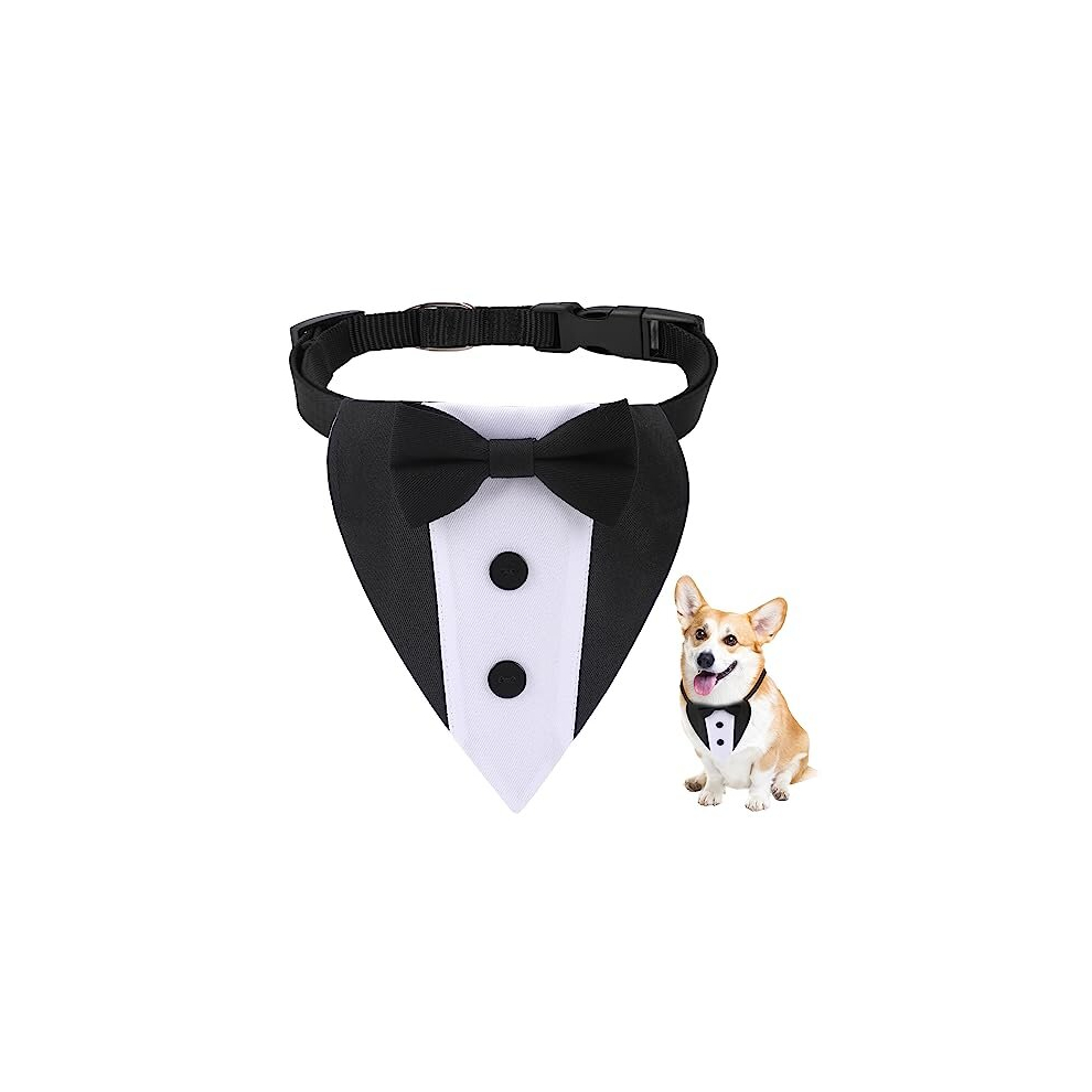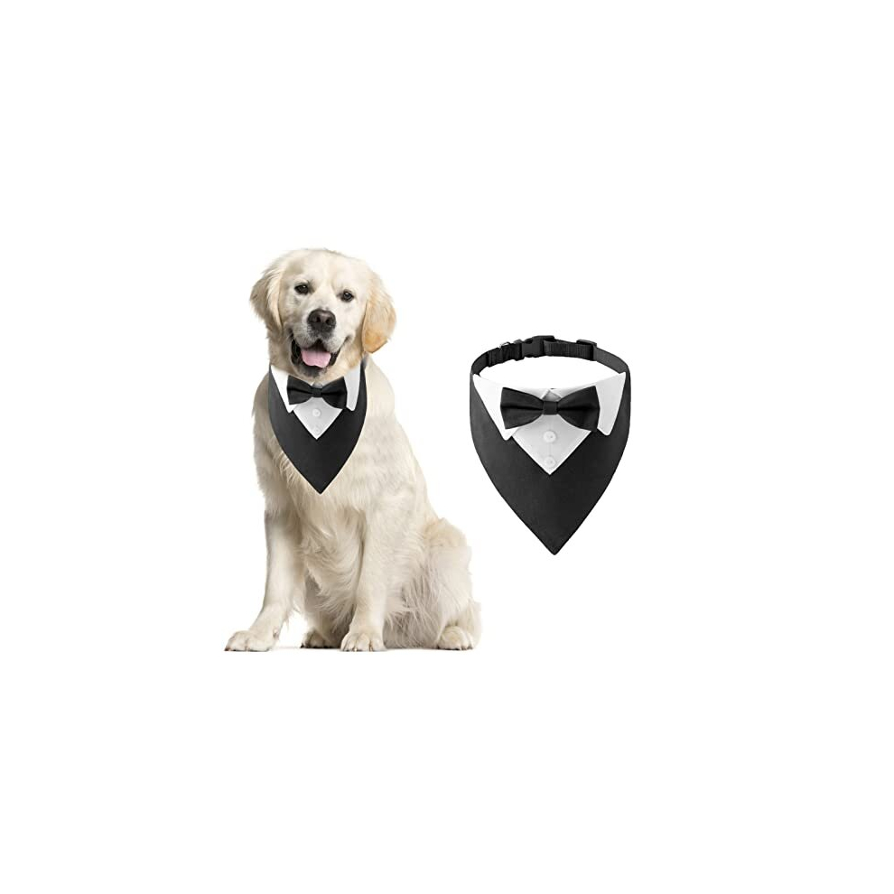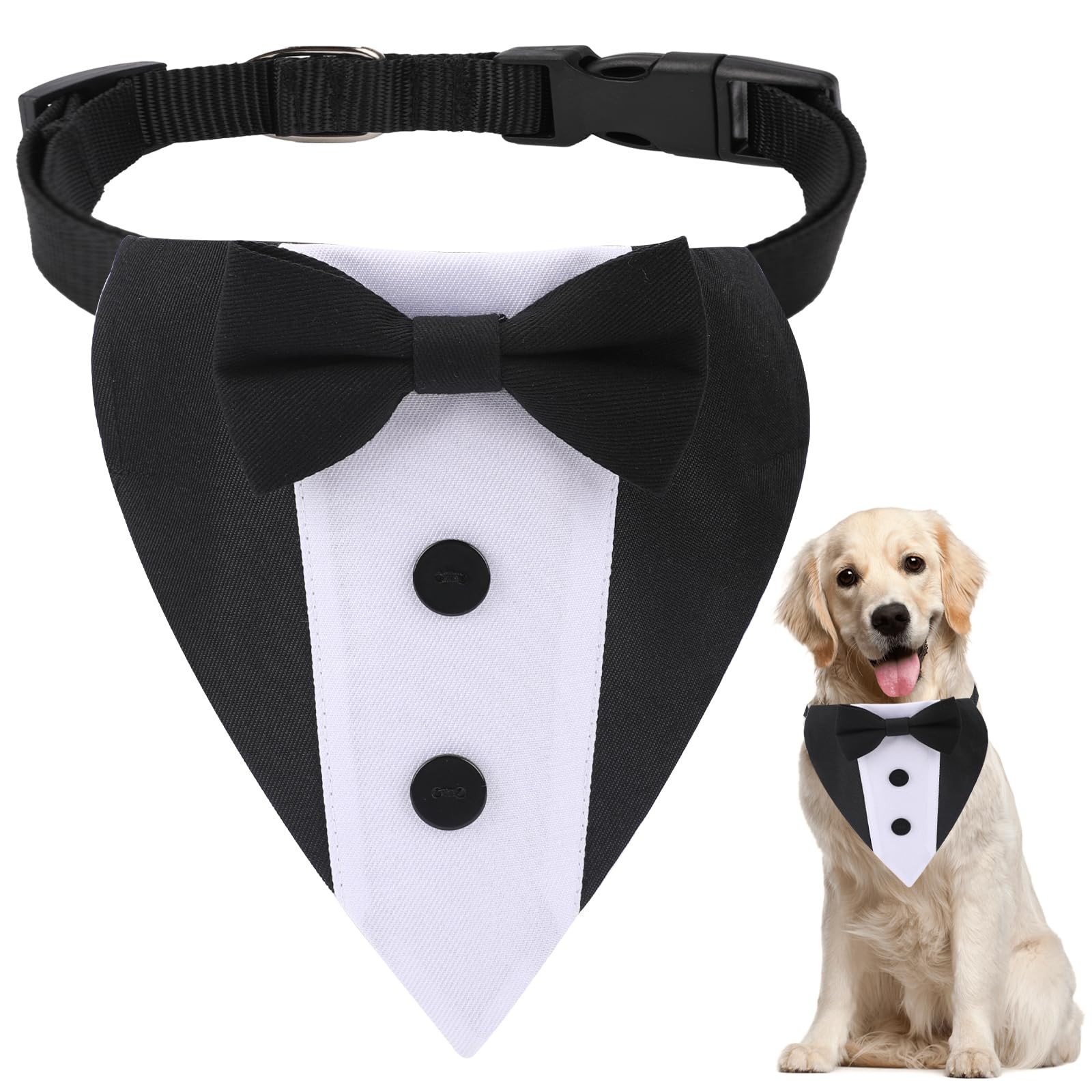 Formal Dog Tuxedo Bandana with Bow Tie Perfect for Weddings Graduations and Dress Up Adjustable Neckerchief for Small Medium and Large Dogs and Cats