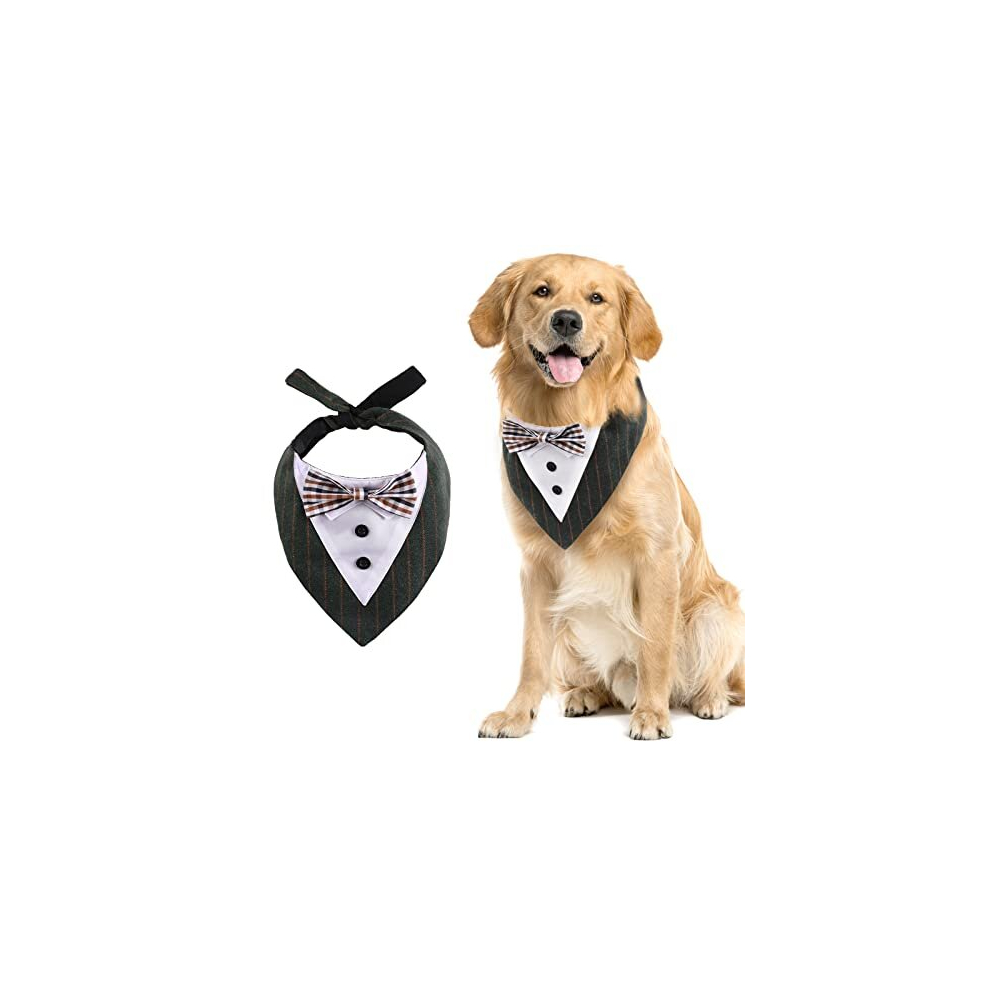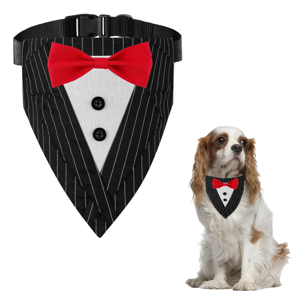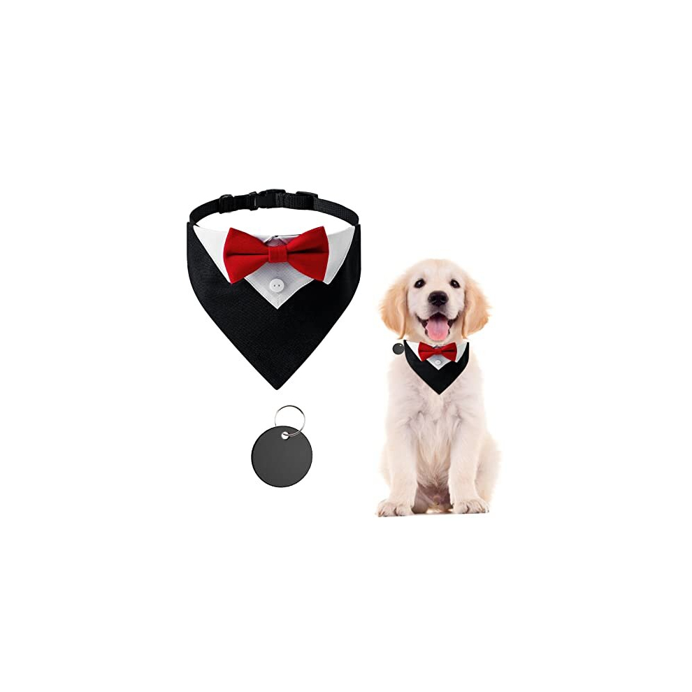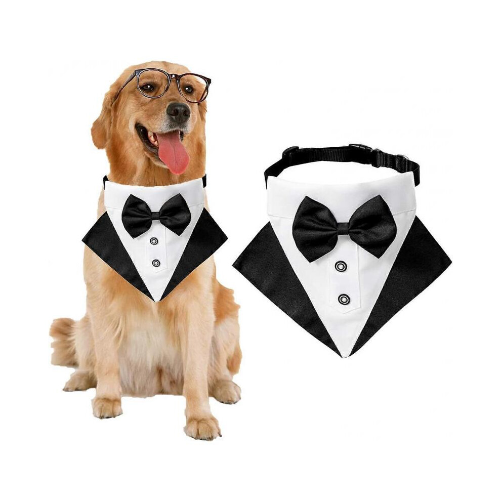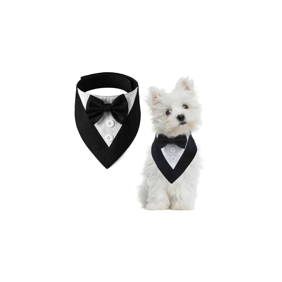 Formal Dog Tuxedo Bandana with Bow Tie Perfect for Weddings Graduations and Dress Up Adjustable Neckerchief for Small Medium and Large Dogs and Cats