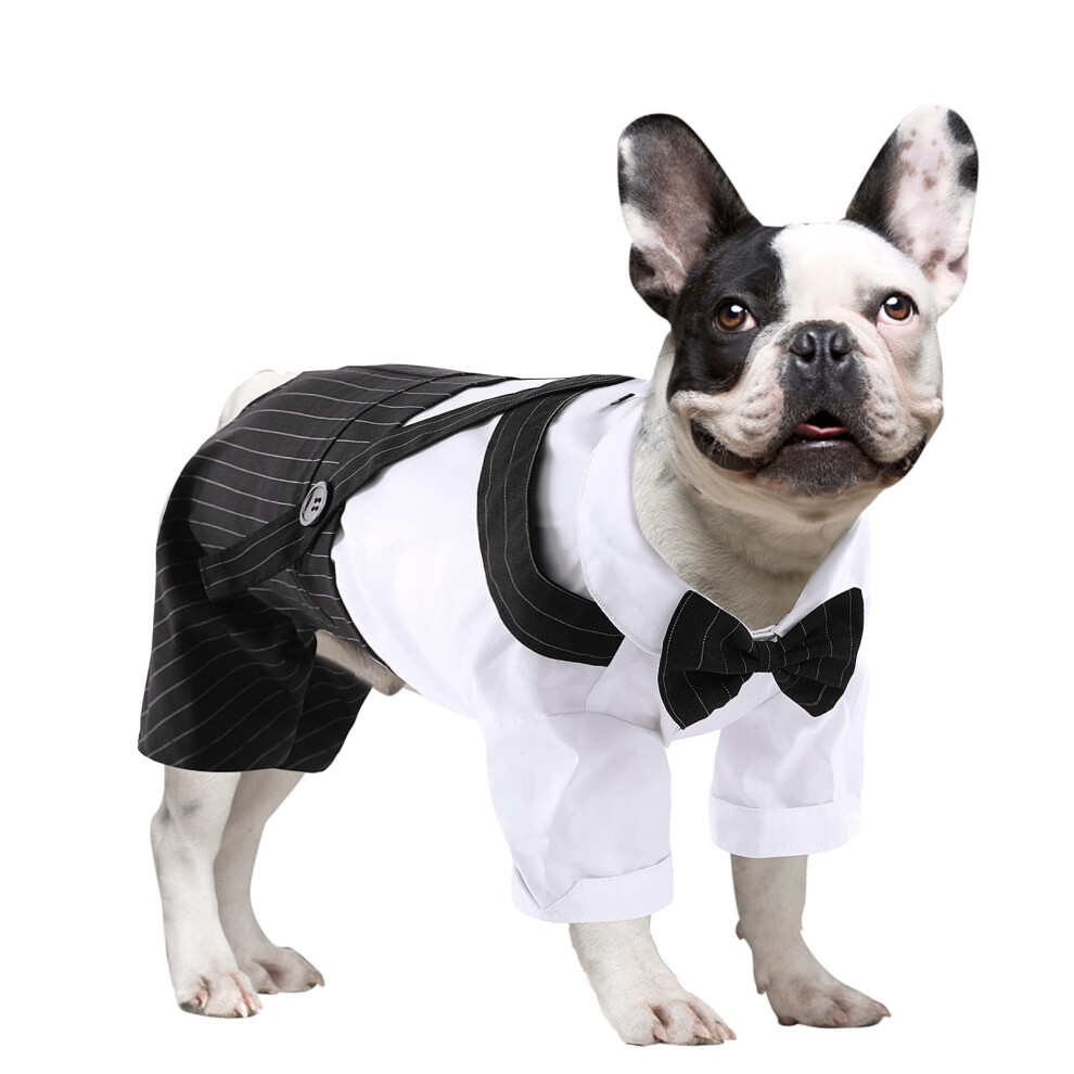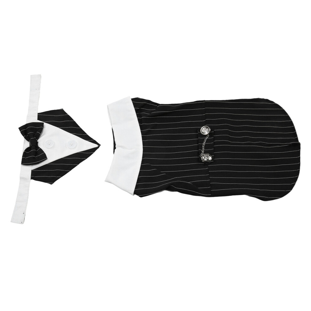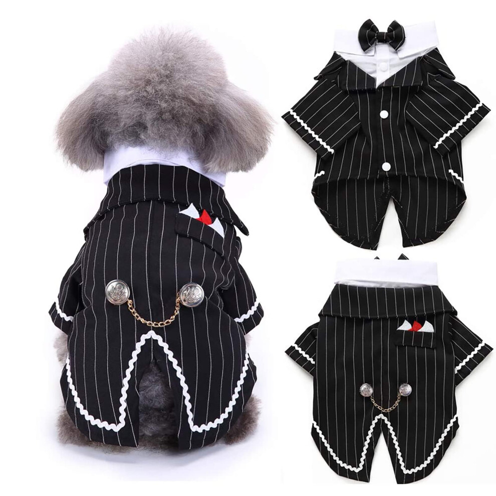 Pet Wedding Suit Stylish Classic Vertical Stripe Dog Formal Tuxedo Suit for Wedding Halloween Birthday Party S