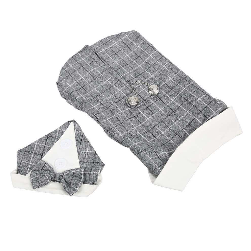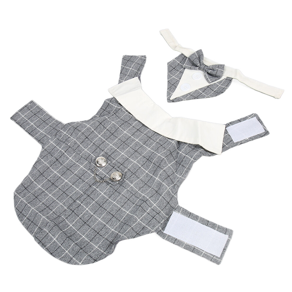 Pet Wedding Suit Stylish Elegant Dog Formal Tuxedo Suit for Wedding Halloween Birthday Party Check Gray L