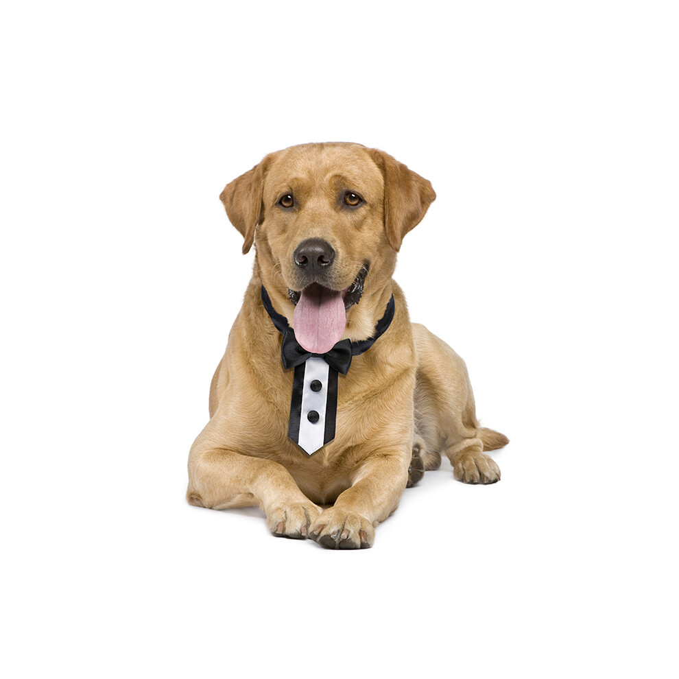 Formal Dog Tuxedo Bandana, Dog Wedding Bandana with Neck Tie Designs, Black Collar (L)