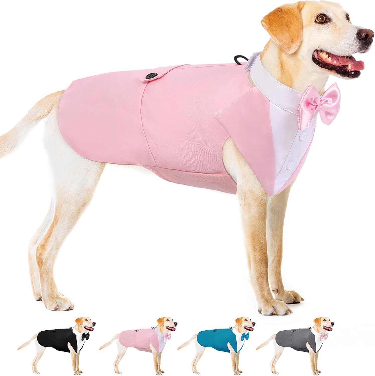 AOFITEE Dog Tuxedo, Pink Tuxedo for Dogs Large Formal Dogs Suit and Bandana Set, Gentle Dog Wedding Outfit, Pet Tux Costume Outfit with Detachable Bowtie Collar for Holiday Dress Up
