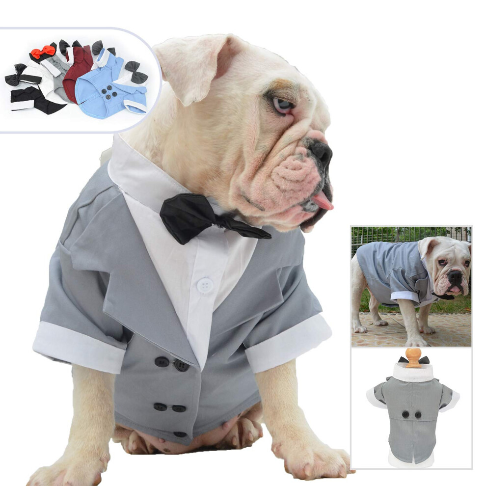 Lovelonglong Bulldog Costume Dog Suit Formal Tuxedo with Black Bow Tie Wedding Clothes for Pugs/French Bulldog/English Bulldog/American Pit Bull Gray