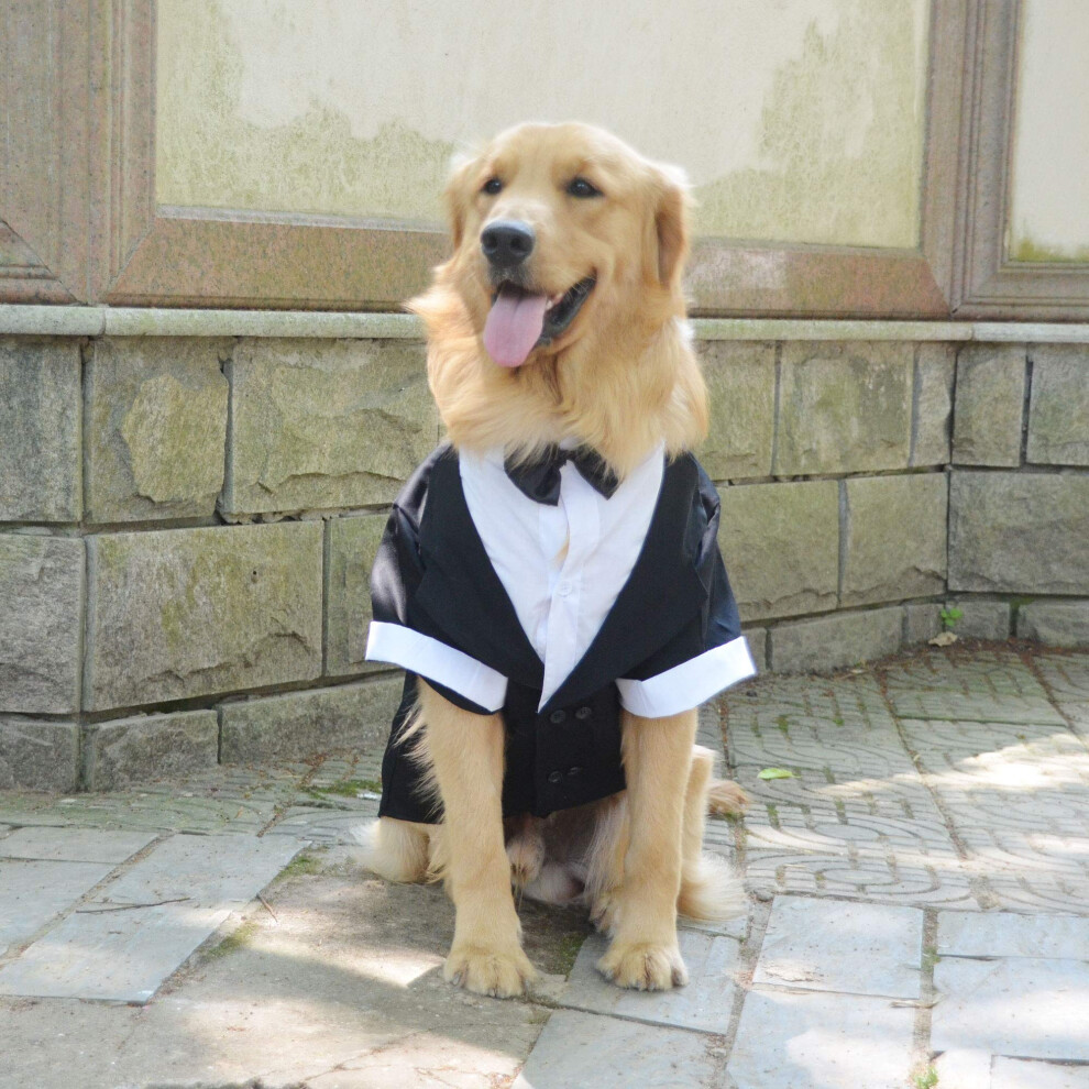 Lovelonglong Pet Costume Dog Suit Formal Tuxedo with Black Bow Tie for Large Dogs Labrador Clothing L-L