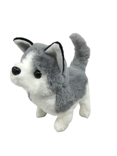 Walking Dog Toys for Kids Plush Robot Realistic Electronic Pet Puppy, Walk and Bark, Interactive Toy Dog for 3 4 5 6 7+ Years Old Gift for Birthdays and Christmas (Grey Wolf Dog)