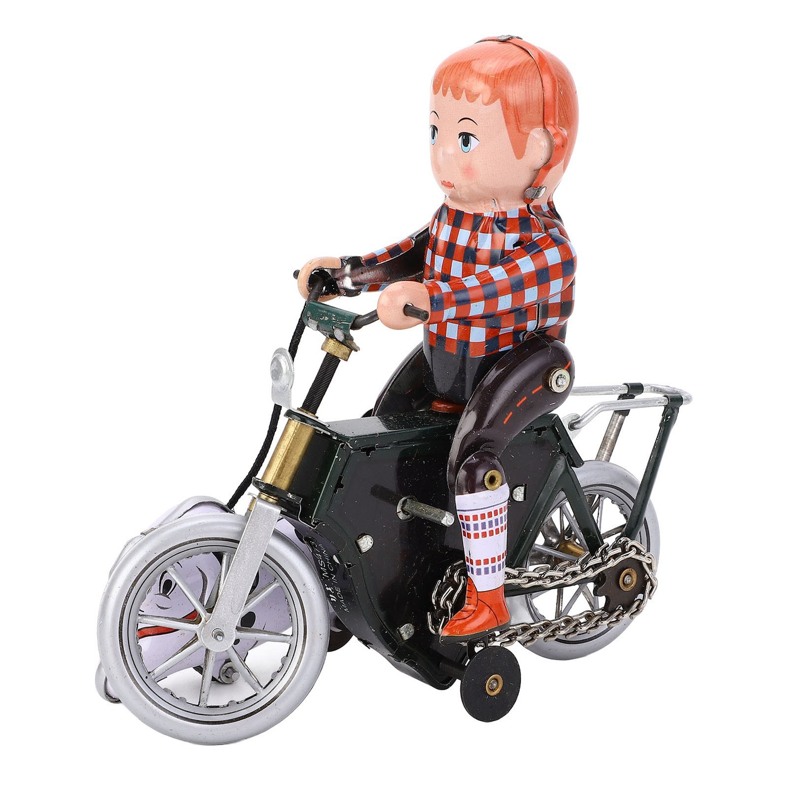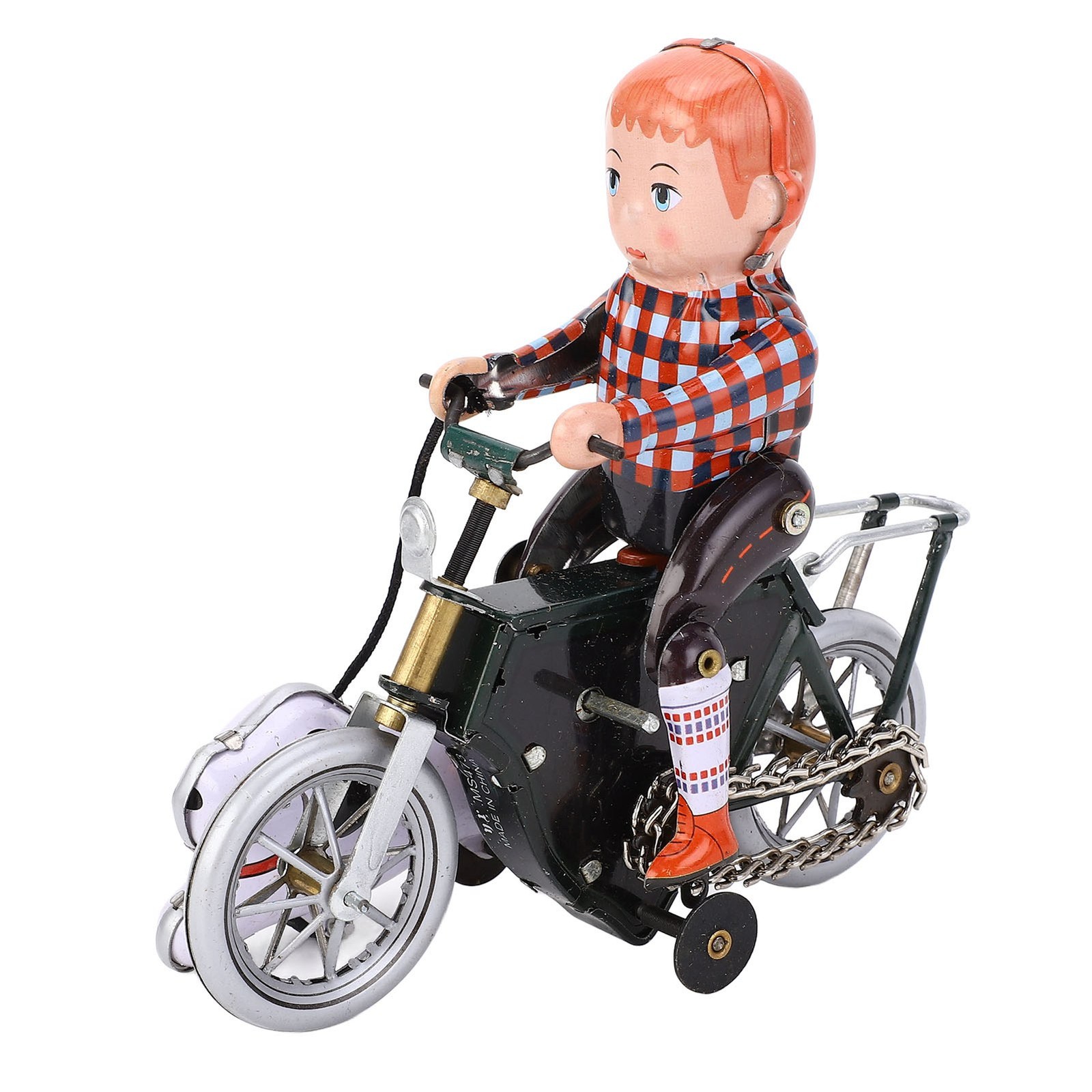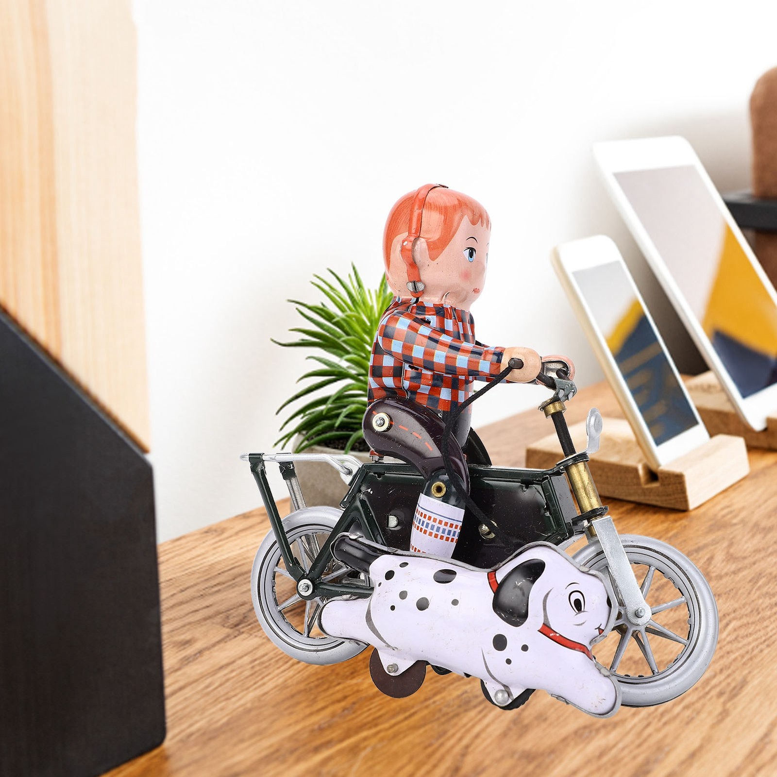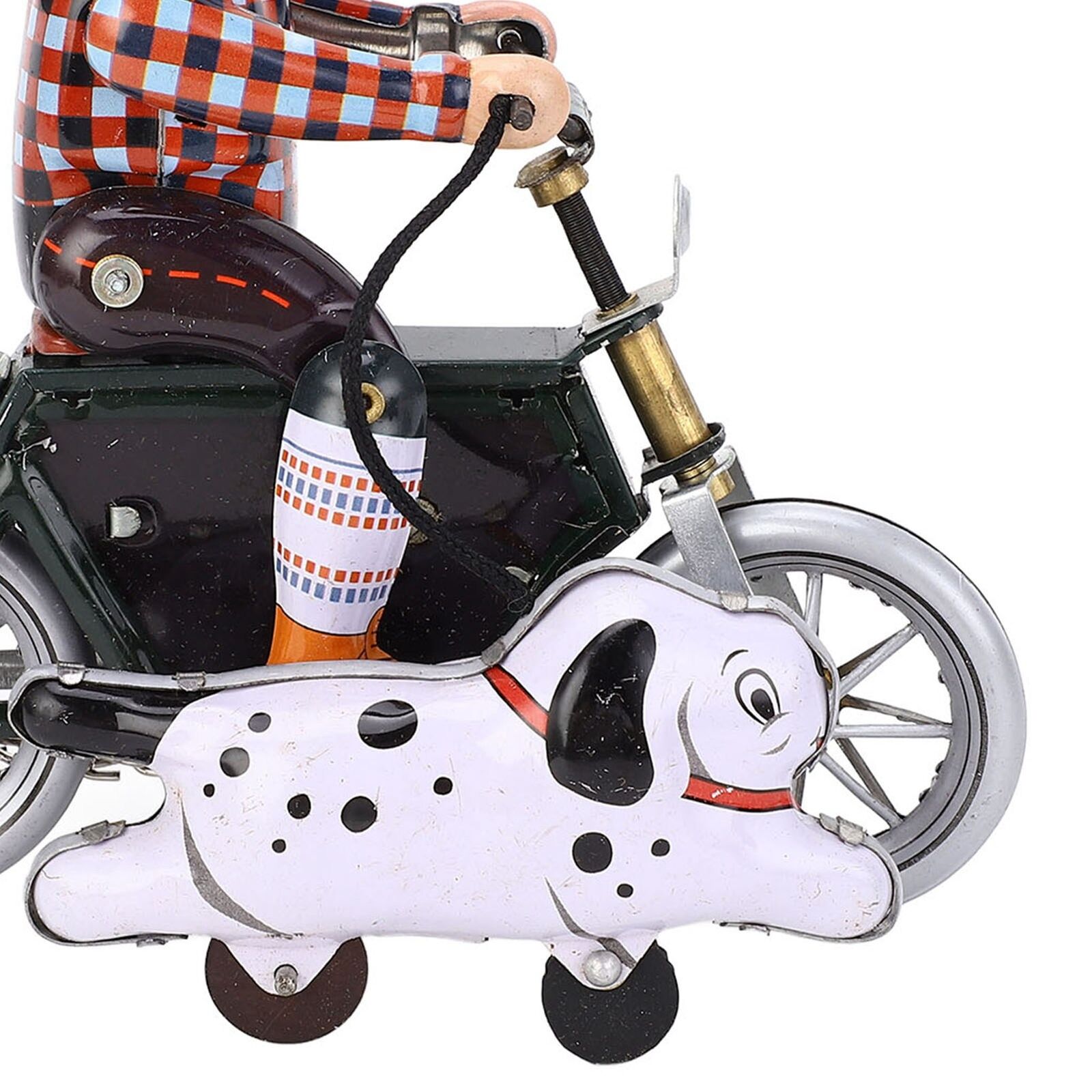 Acouto Clockwork Toy Retro Boy Walk The Dog By Bike Wind Up Tin Toy for Collection Decoration Once Up Wound Rides Little Bik Clockwork ToyRetro ToyClockwork Tin ToyWind