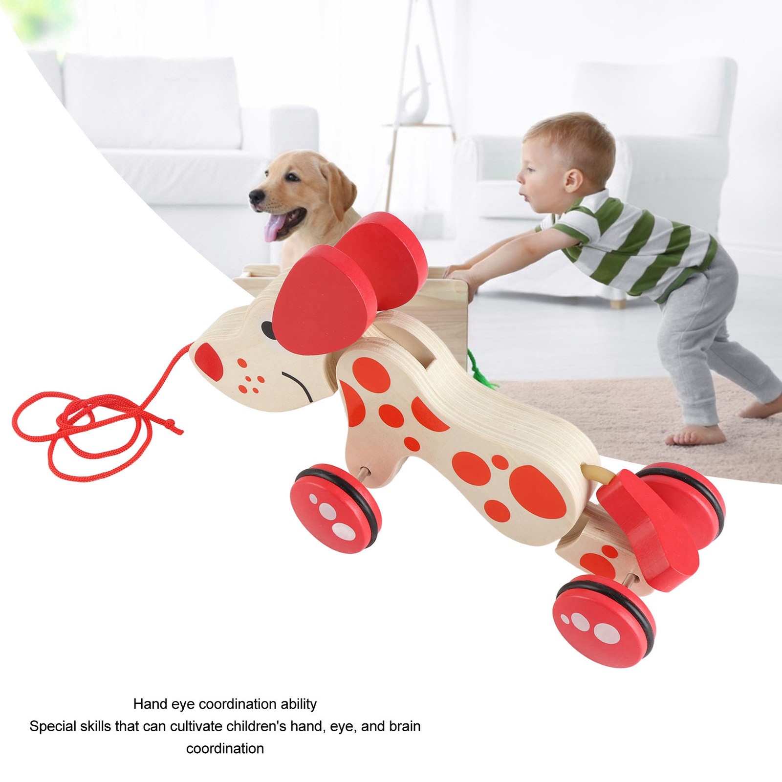 Generic Push Pull Toy Puppy Walk Along Pull Wooden Hound Dog Walk A Long Puppy Wooden Pull Toy for Walking Toddlers (Type 1)