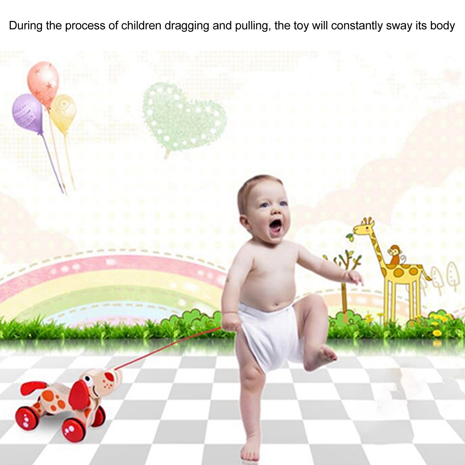 Wooden Pull Dog Toy Wooden Walk Pull Along Toy with String Toy Montessori Toddler Pull Toys for Walking Toddlers