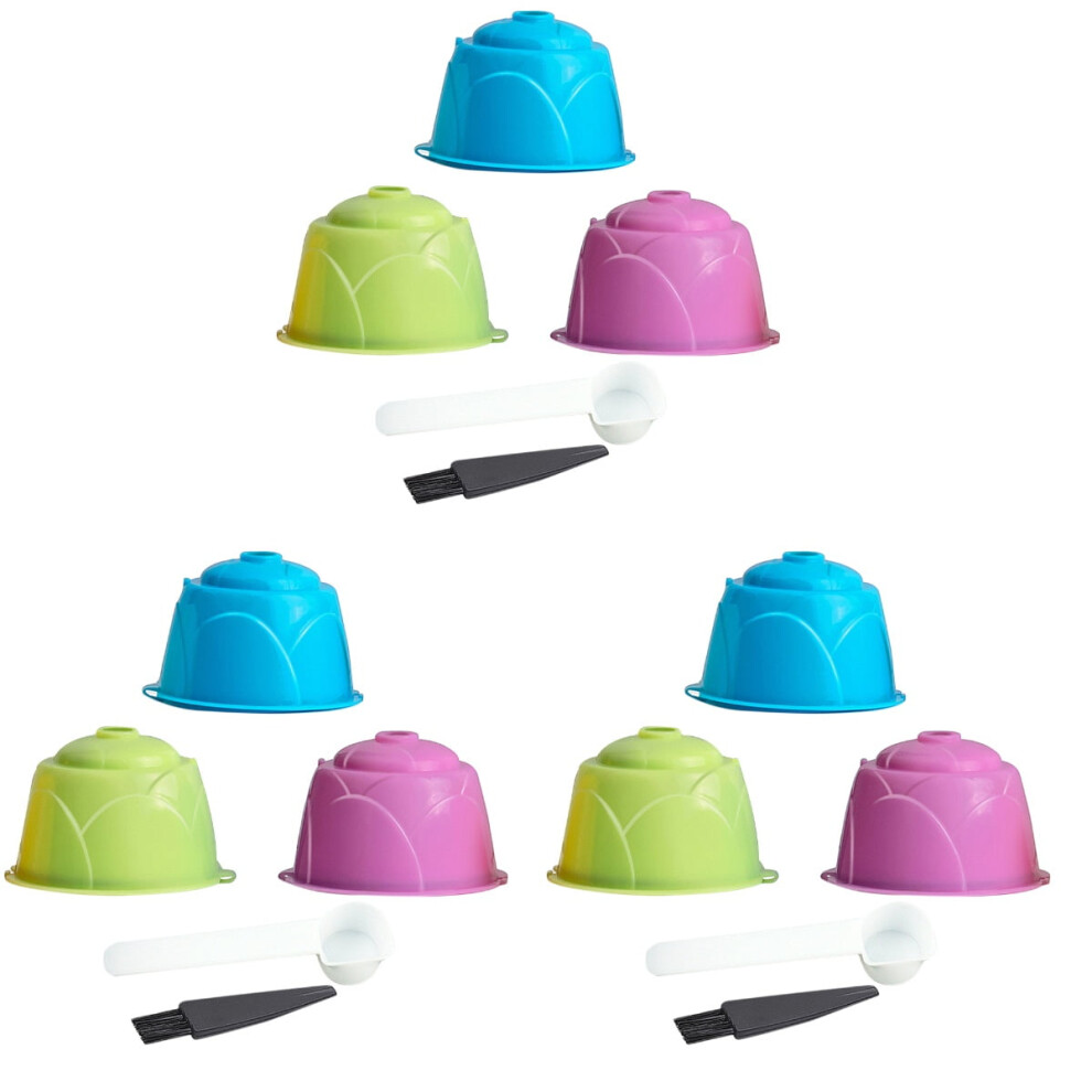 3 Sets of Reusable Coffee Coffee Tamper Filter Cup Compatible for Dolce Coffee Machine with Spoon and Brush (Pink Blue Purple)