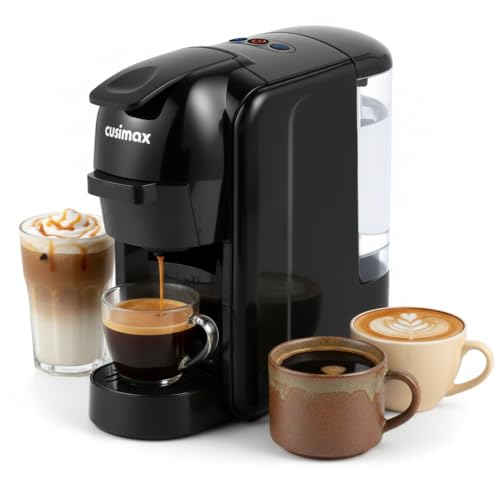 CUSIMAX Coffee Machine, 2 in 1 Single-Serve Pod Coffee Machine, 19 Bar Pressure Mini Pod Coffee Maker, Compatible with Nespresso & Dolce Gusto Capsule, 1450W, 0.6L, Black