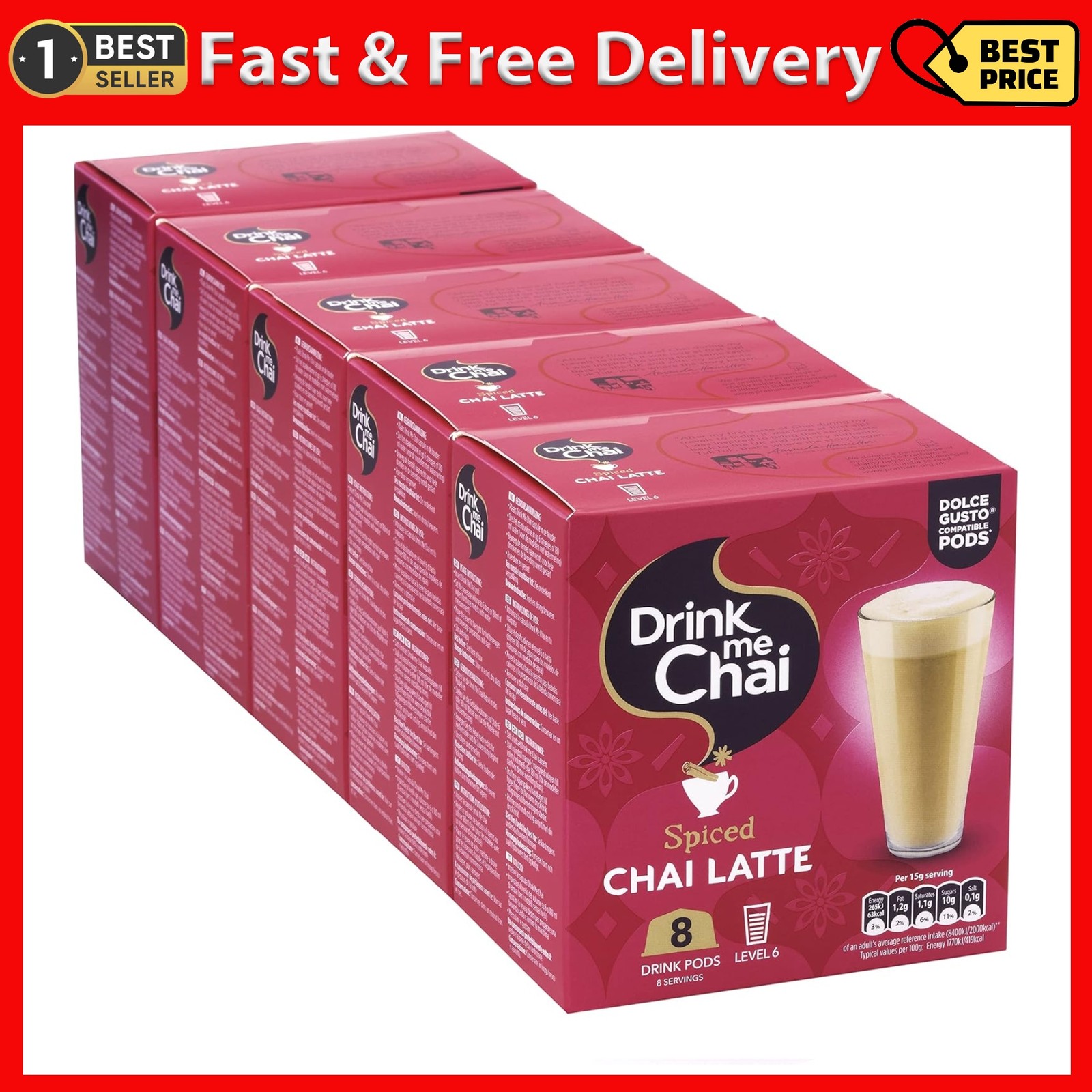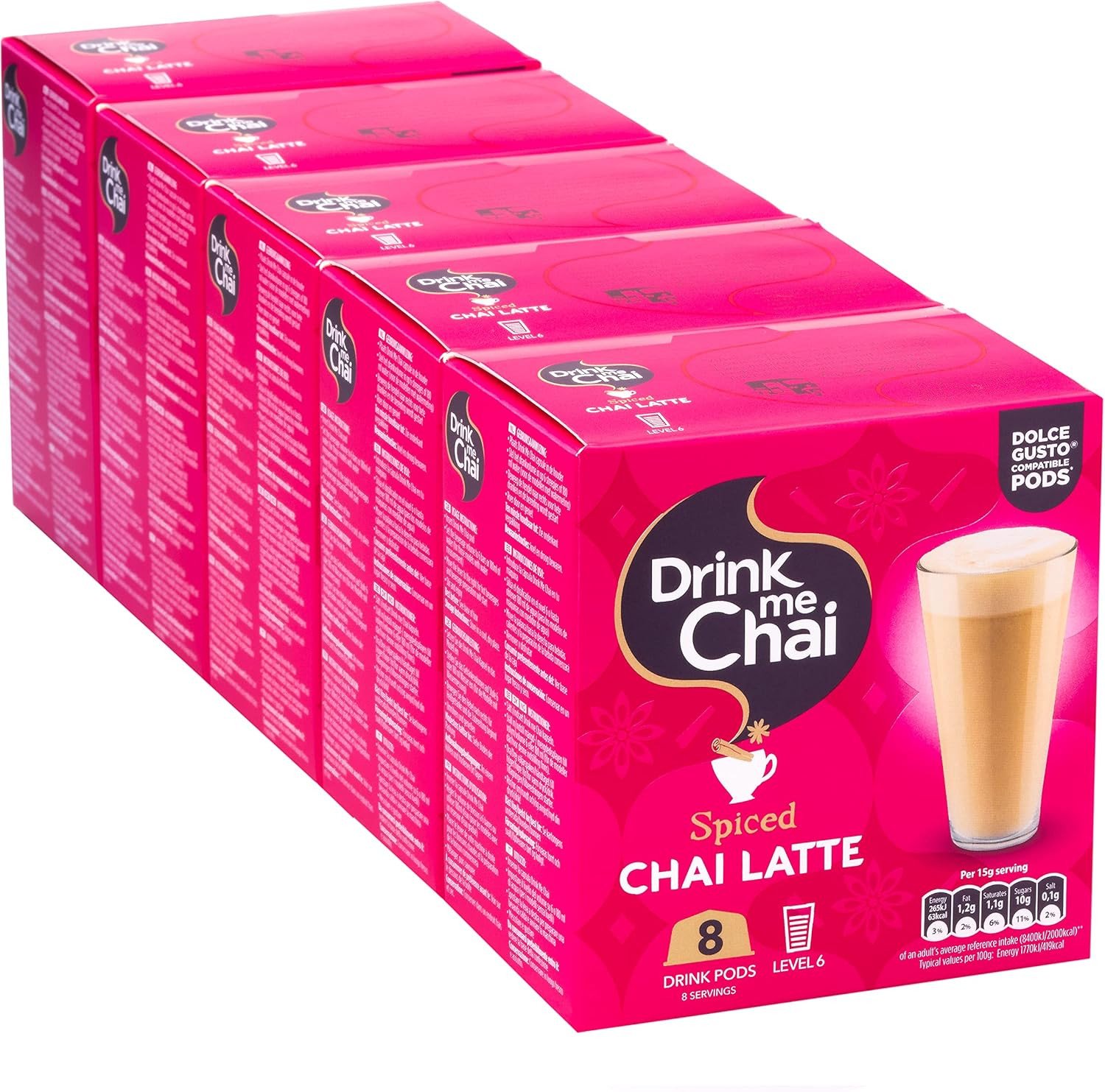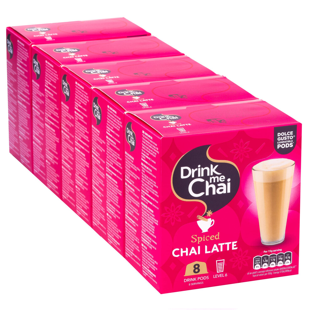 Drink Me Chai Spiced Chai Latte Dolce Gusto Compatible Pods - 8 Pods x 5 Boxes (