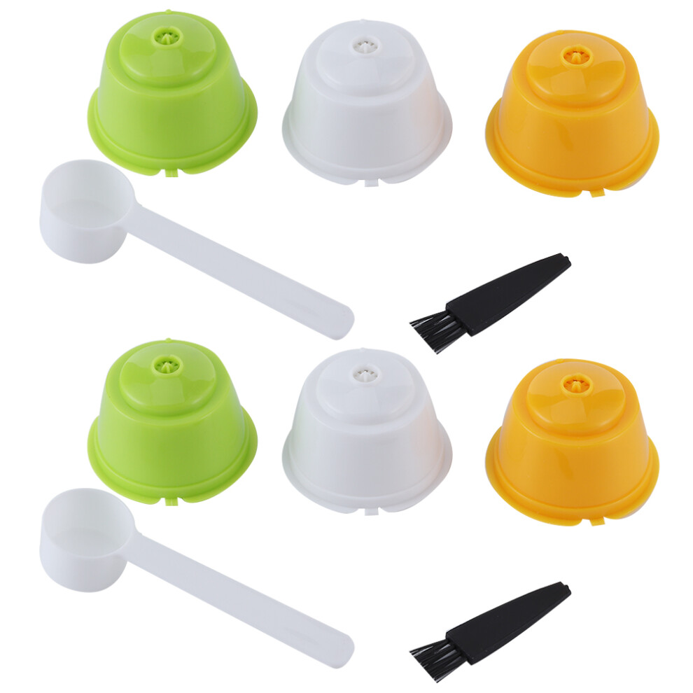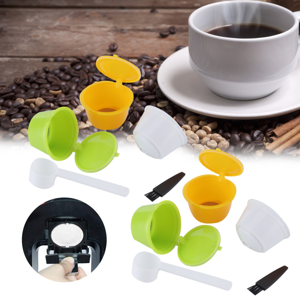 Coffee Machine Capsule Kit Reusable Coffee Filter Cup Accessories Fit for DOLCE GUSTO(Yellow 3 Capsules1 Spoon 1 Brush)