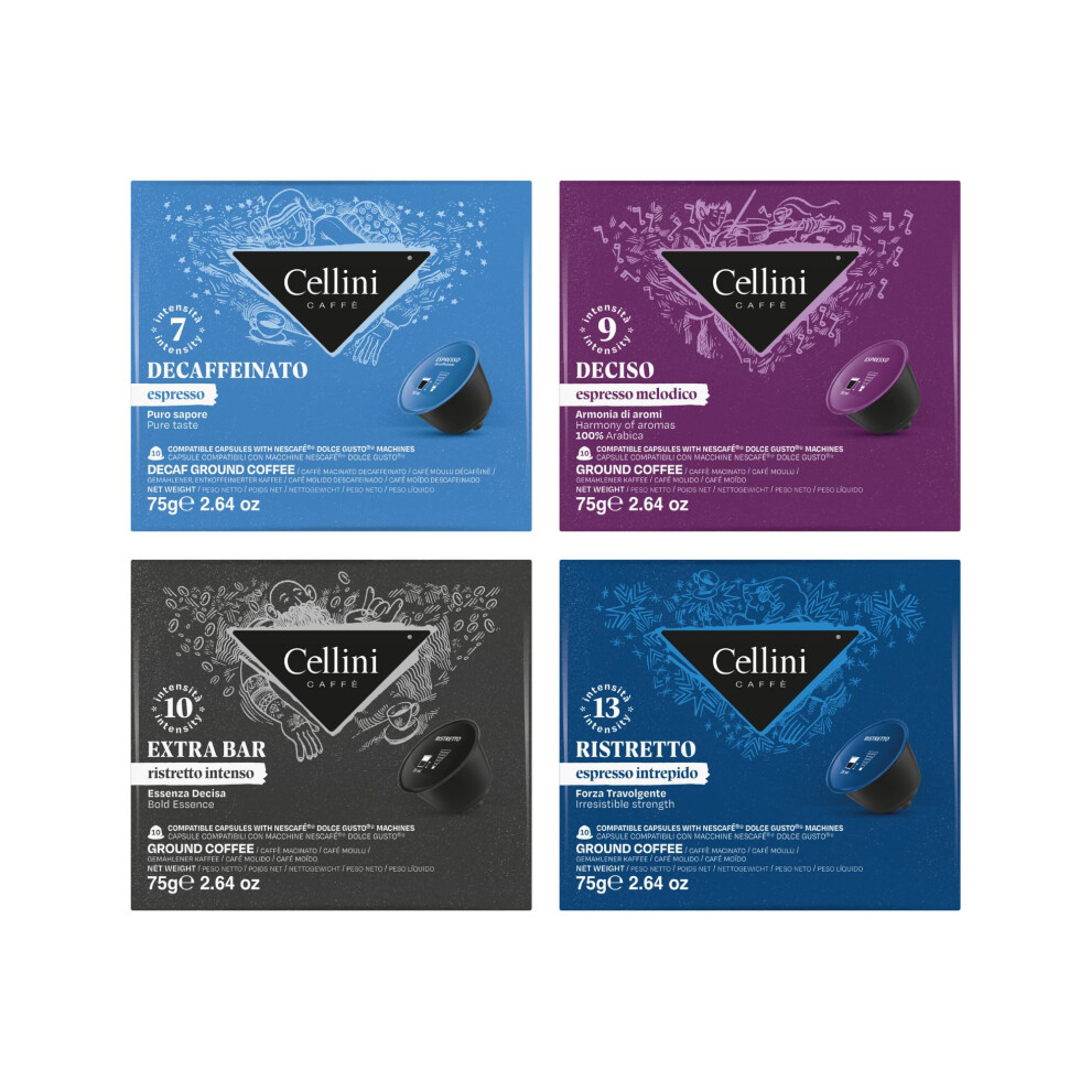 Cellini Coffee Capsules Compatible with Dolce Gusto - Tasting Kit 120pcs | Coffee Capsules Compatible with Dolce Gusto