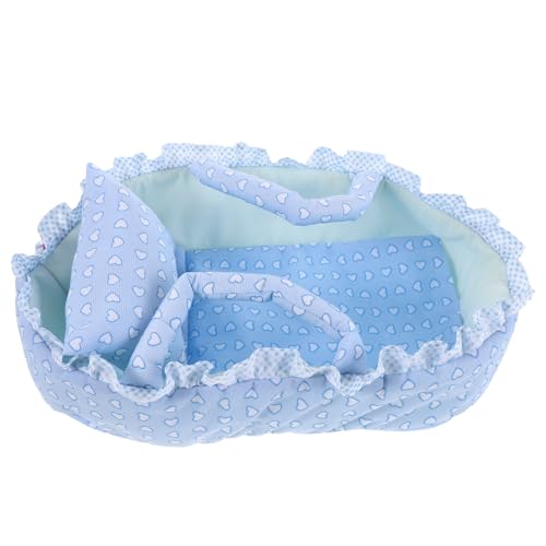 OFFSCH Reborn Baby Dolls Bassinet for 35cm Babydoll - Handheld Doll Crib Bed Carrier with Pillow/Blanket for Dollhouse Scene DIY Kids Pretend Play 13.8x9x3.9Inches Blue