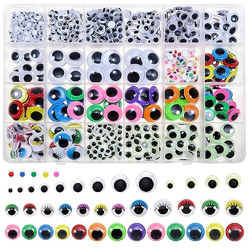 Czdtq 600 Pcs Mixed Wiggle Googly Eyes, Eyes Self Adhesive,Sticky Wiggle Googly Eye,Eyelashes DIY Craft Doll Eye Making Accessories for Crafts, Scrapbooking, Dolls & DIY Projects Assorted Size 5-15mm