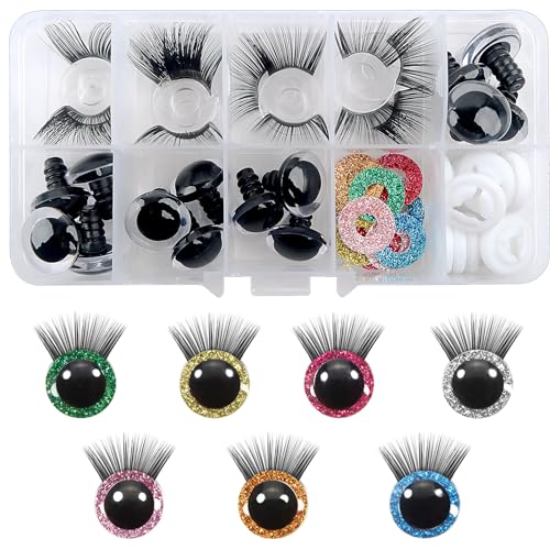 TOAOB 14 Sets 16 mm Glitter Safety Eyes with Eyelashes and Washers for Amigurumis 7 Colors Craft Crochet Eyes for Puppet Bear Stuffed Animal Doll Making