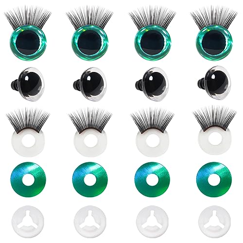 TOAOB 4 Sets Plastic Safety Eyes 25mm Glitter Safety Eyes with Washers and Black Eyelashes for Amigurumis Green Craft Crochet Eyes for DIY Puppet Bear Stuffed Animal Doll Making