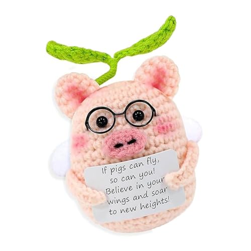 ZwaitL Handmade Crochet Flying Pigs With Inspirational Card Decoration Crochet Dolls Handmade Doll