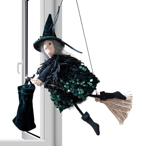 Halloween Witches Decoration - Spooky Flying Application Figure, Creepy Animated Broom Doll | Realistic Haunted Display, for The Indoor Garden Porch of s