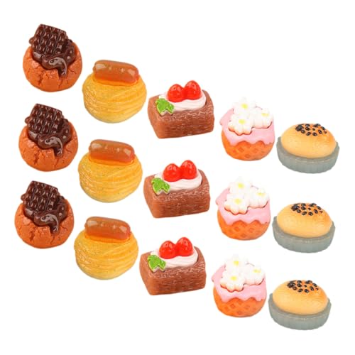 Gatuida 15pcs Miniature Food Doll House Cake Models Mini Dessert Miniature Pretend Cake Artificial Food Prop