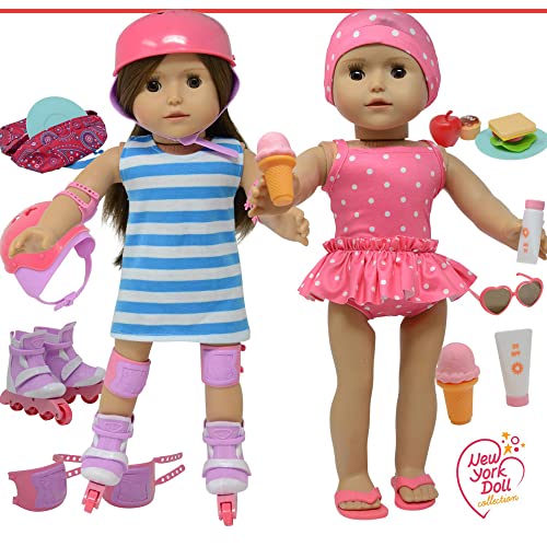 The New York Doll Collection Doll Accessories Fits 18 Inch / 46cm Dolls - Includes Roller Skates and Bathing Suit Swim Set for Fashion Girl Dolls - Doll Clothing and Many More Accessories