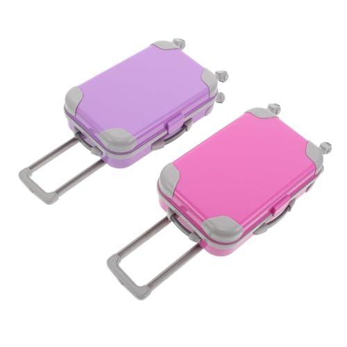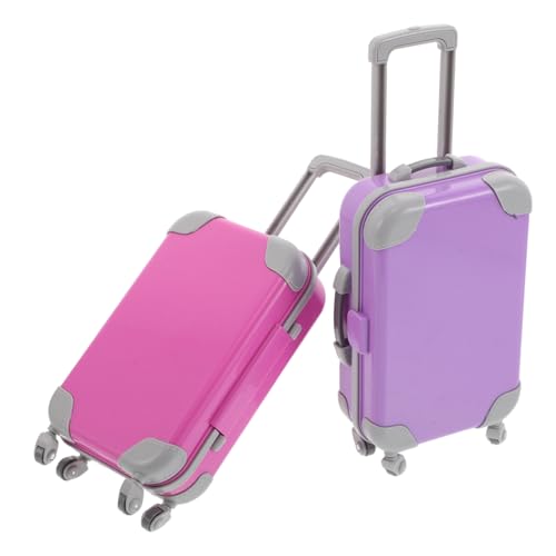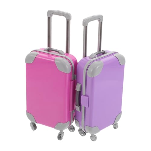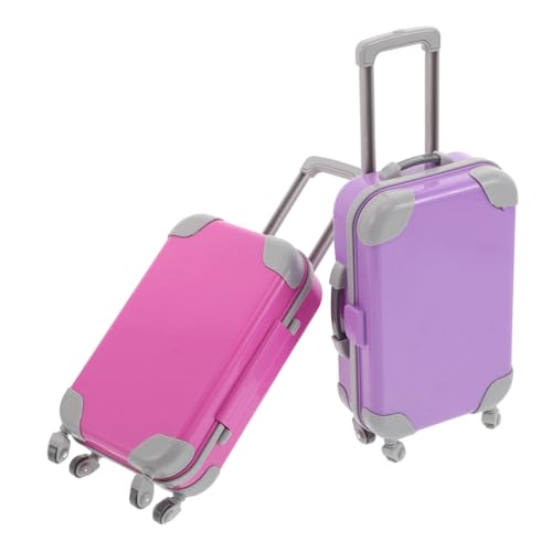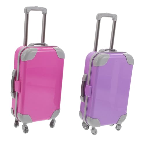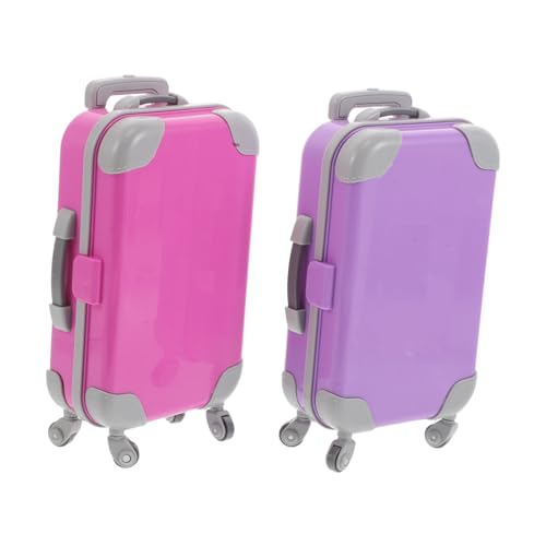 BCOATH 2pcs Doll Travel Suitcase Set for Miniature Hard Shell Rolling Luggage with Handle Wheels Lightweight Portable Purple Doll Accessories for Pretend Play