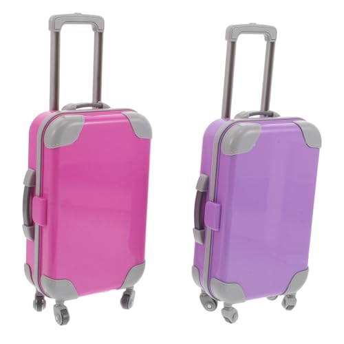 Grtheenumb 2 PCS Mini Doll Luggage Set for 16 & 18 Inch Dolls, ABS Plastic Suitcase Toy with Handle, Travel Case for America Girl Doll Accessories| Dollhouse Miniatures