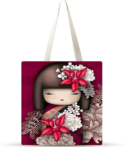 Cekog Japanese Doll,Set of 20 Tote Bag, Casual Bag Washable Canvas Tote Bags for Women,Reusable Shopper Canvas Bag Handbag 14.96x13.39 inch for Friends Women Girls Work Shopping Travel