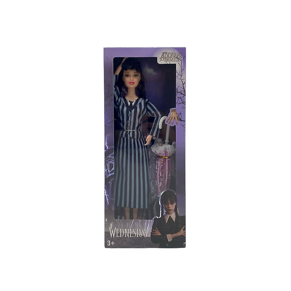 (Striped) Halloween The Addams Family Wednesday Doll 11" Action Figure Toy Model Kids Girls Gifts